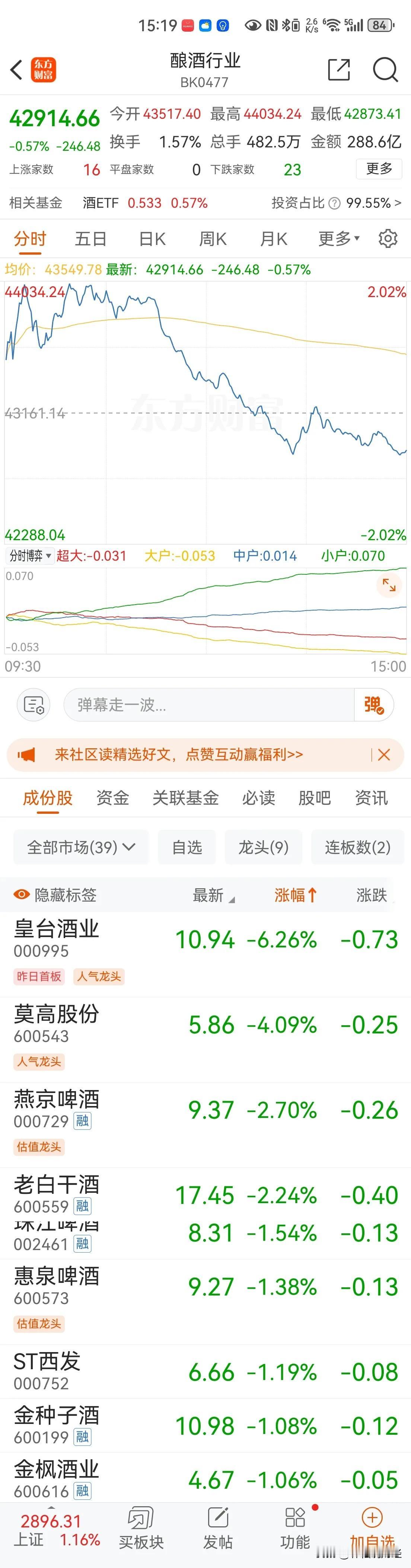 #a股# 酿酒成为今天A股唯一下跌行业,说明市场共识正在形成。老林启蒙多年,初见效果。 觉悟有先后,正常啊。