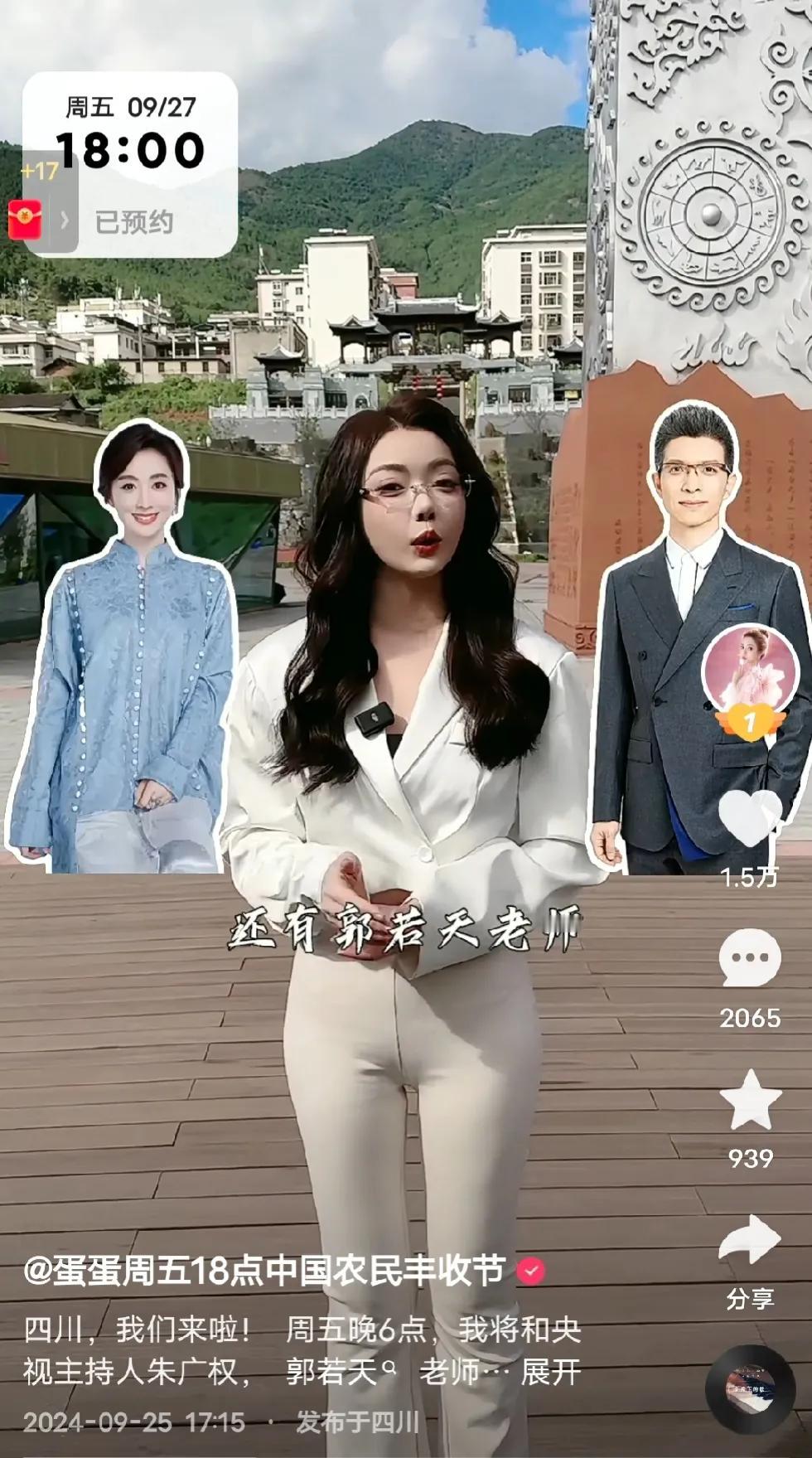蛋蛋,去四川助农了。本周五,蛋蛋将和央视主持人朱广权、郭若天,一起开启直播。庆祝农民丰收节,介绍全国各地的好物和当地的特色农产品。 这才是优秀的主播,不只是网红,不只是为了耍剧本,要礼物。。 蛋蛋是正能量的主播。