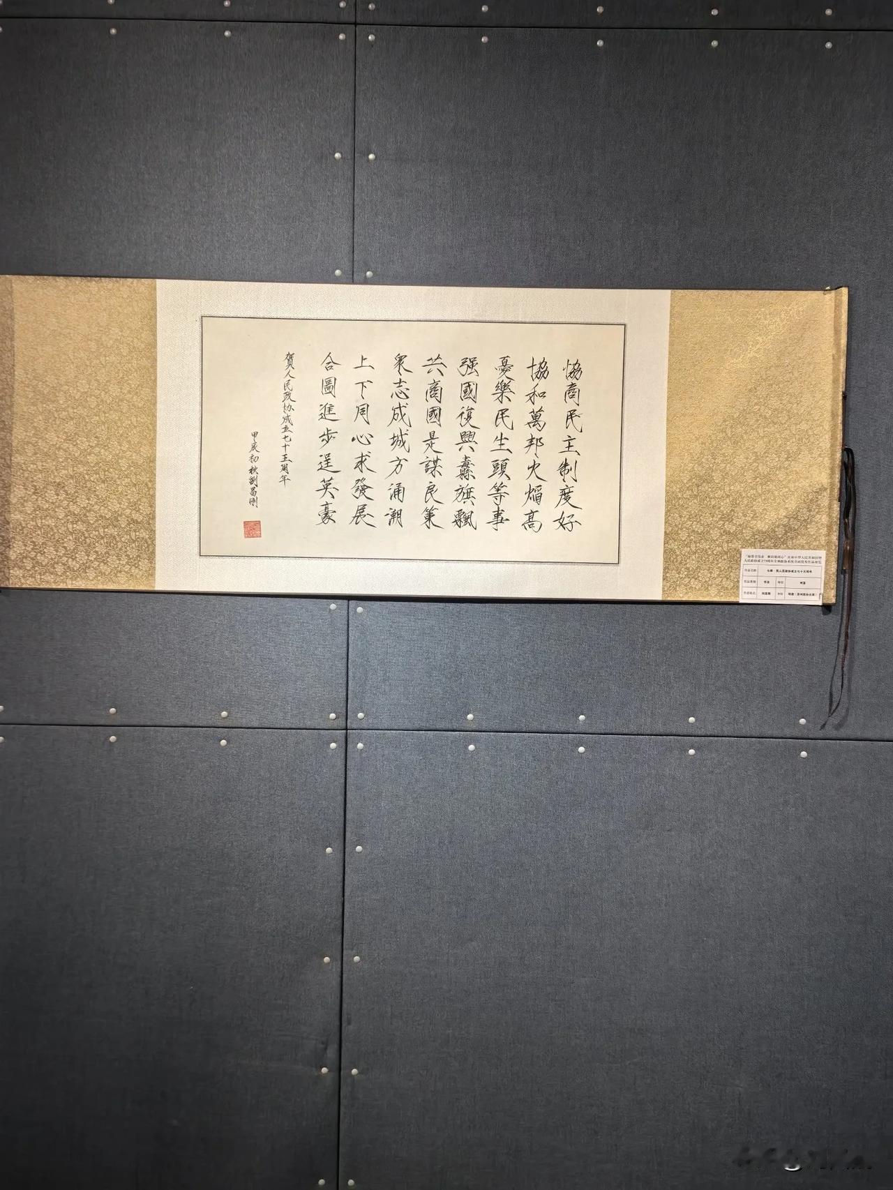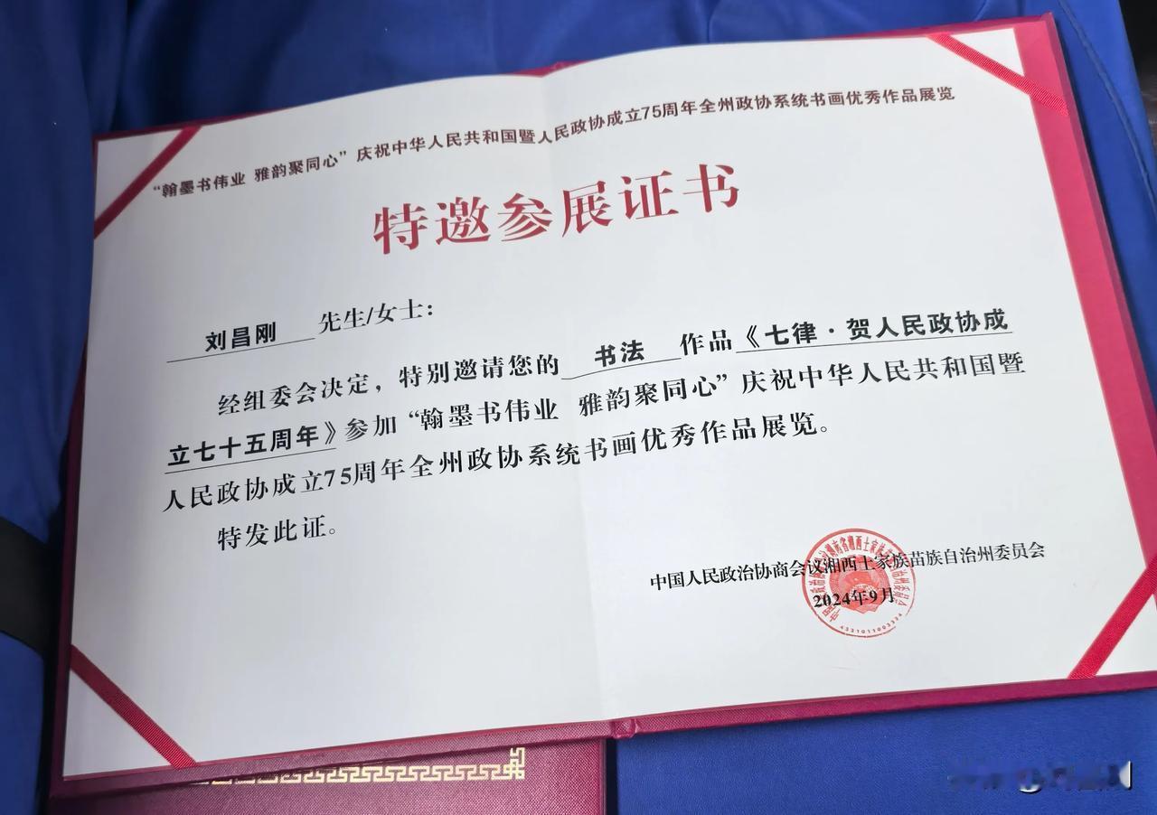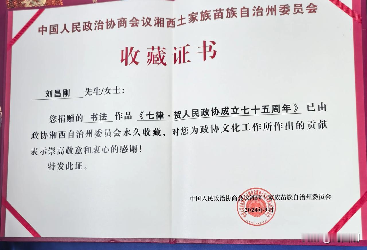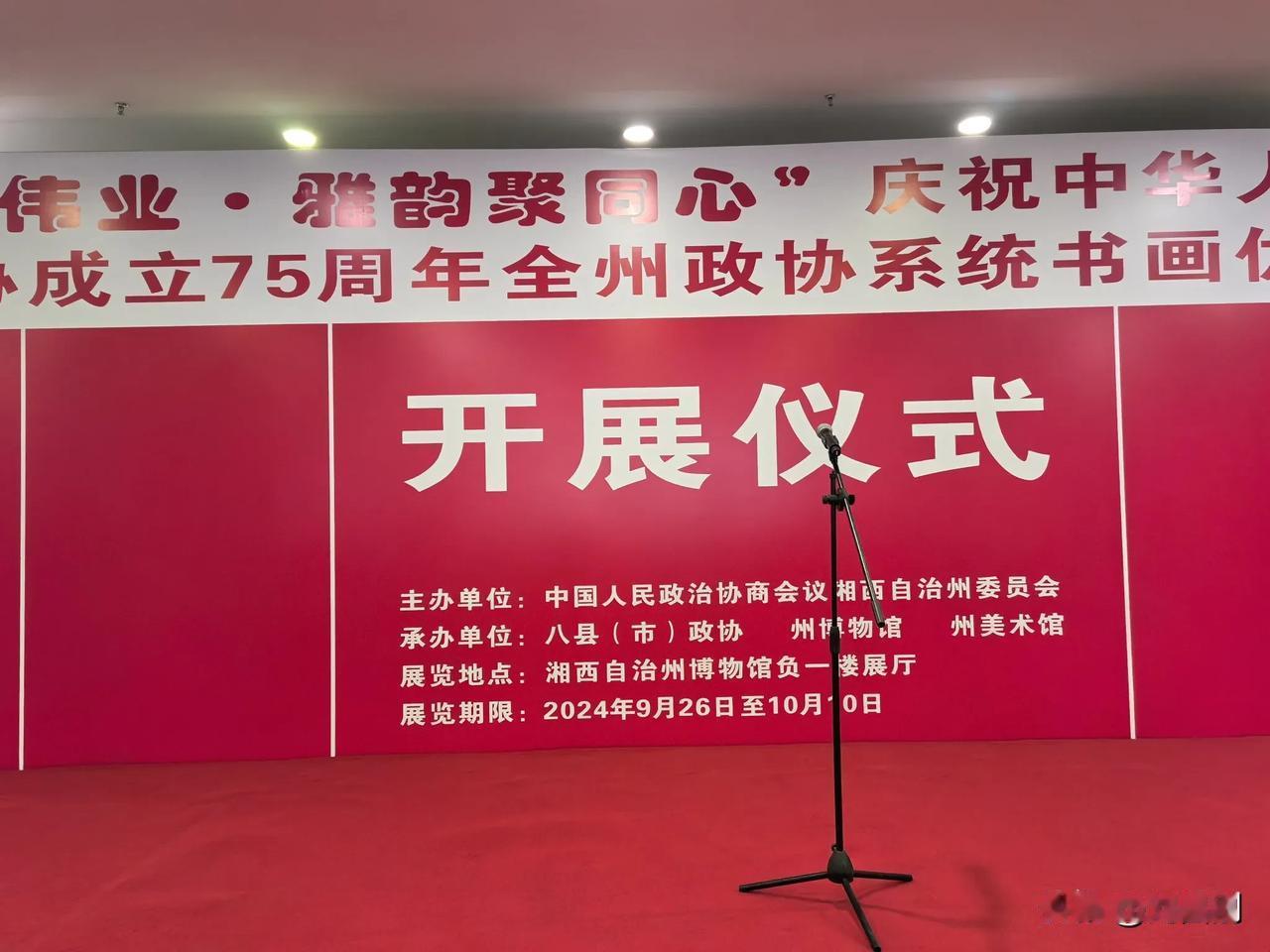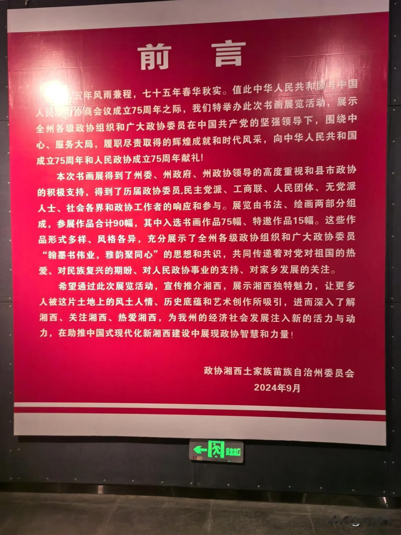 七律.参加湘西州庆祝人民共和国和人民政协成立七十五周年书画展览活动感怀 (2024年9月26日) 笔走龙蛇绘盛世,墨香四溢颂新天。 江山如画宏图展,作主当家锦绣篇。 共筑中华复兴梦,团结奋进固疆关。 七十五载富强路,三百万人执锐坚。