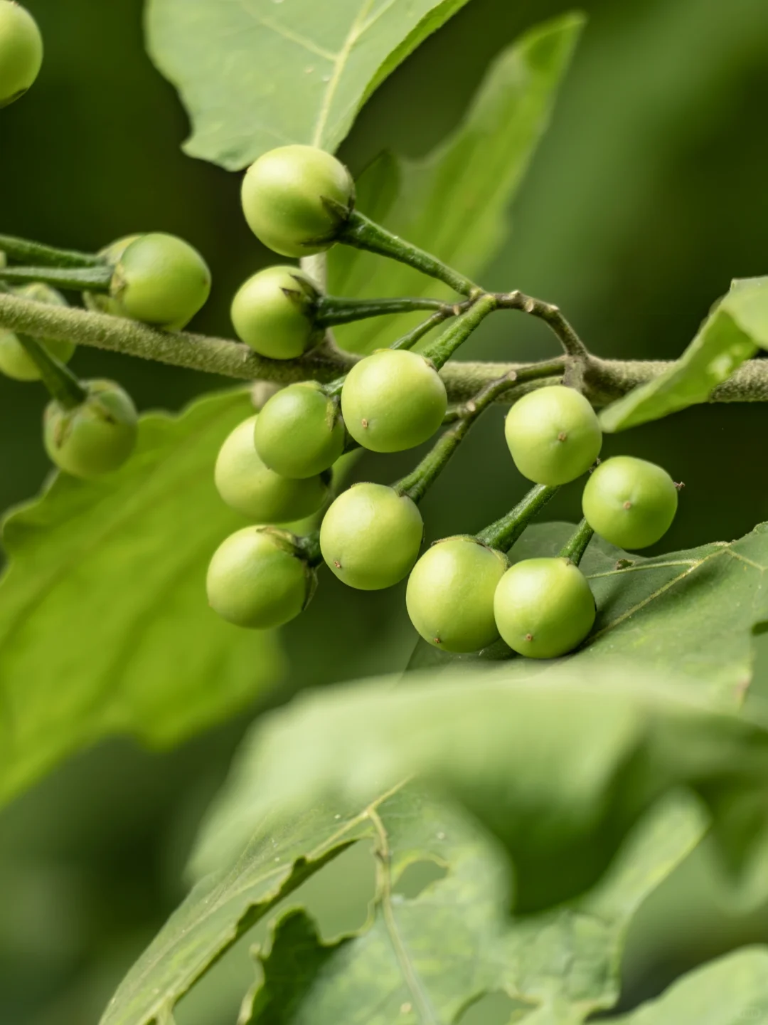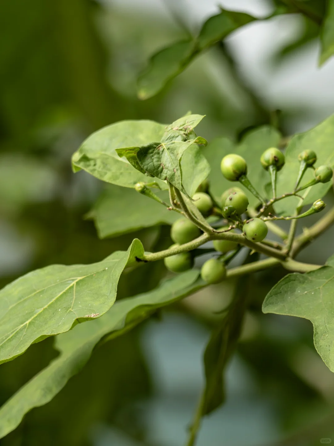 若不是叶子和茄子略有相似,乍一看,你可能很难认出它的身世。水茄的果实与我们熟悉的茄子差异巨大——小小的球形果实,成熟时从黄变红,远离了茄子的长条身形,活脱脱一副不走寻常路的模样。