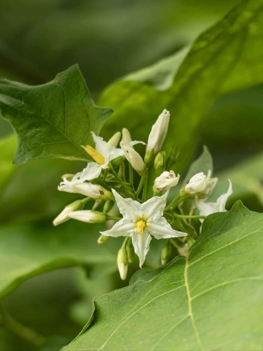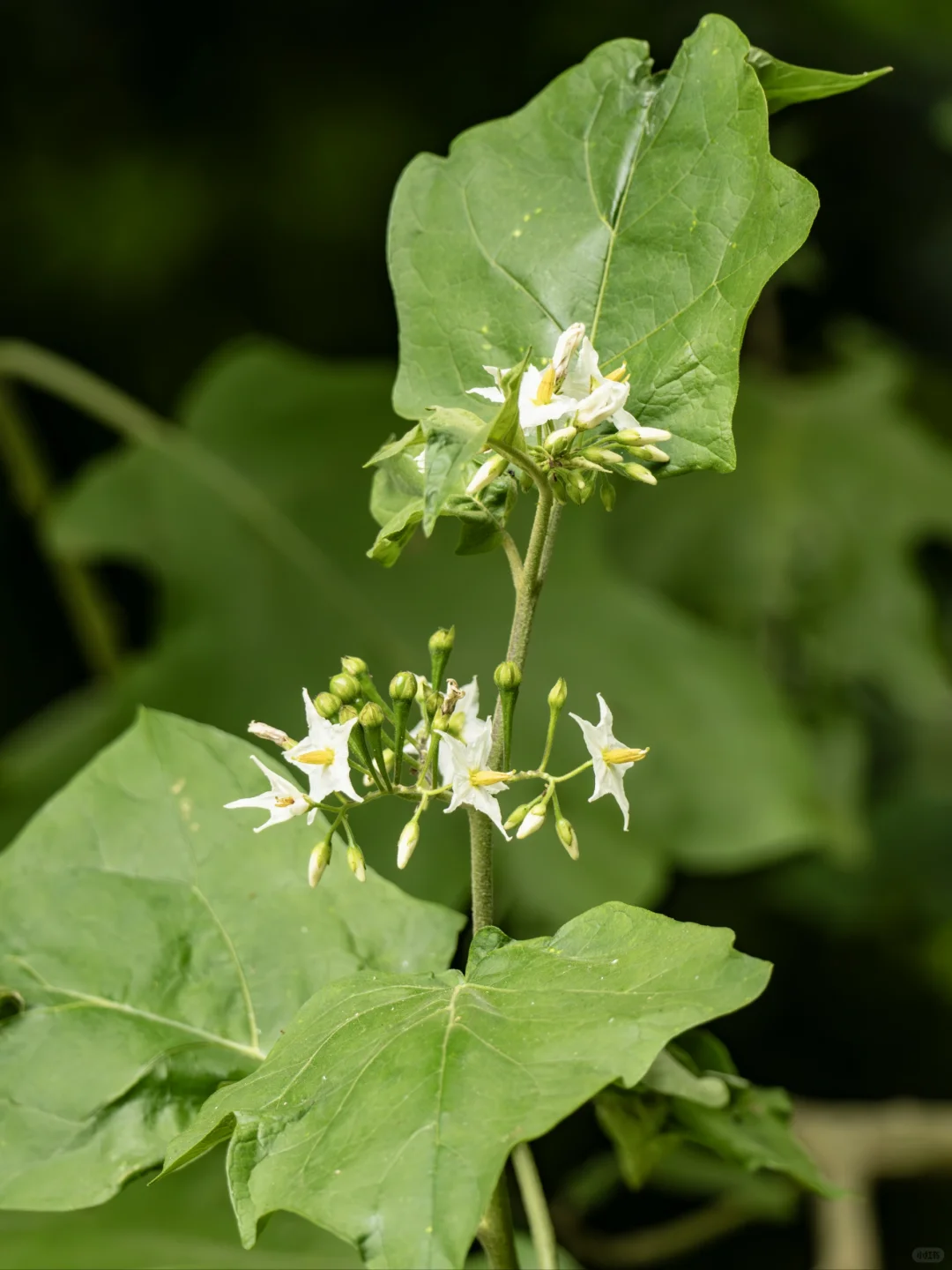 水茄的花倒是颇具魅力。五角星形的小白花一开,仿佛给田间增添了几分秀丽。更有趣的是,除了常见的白色花朵,偶尔还能看到稀有的蓝色五角星花,清新脱俗,似乎为这低调的植物增添了一丝神秘感。