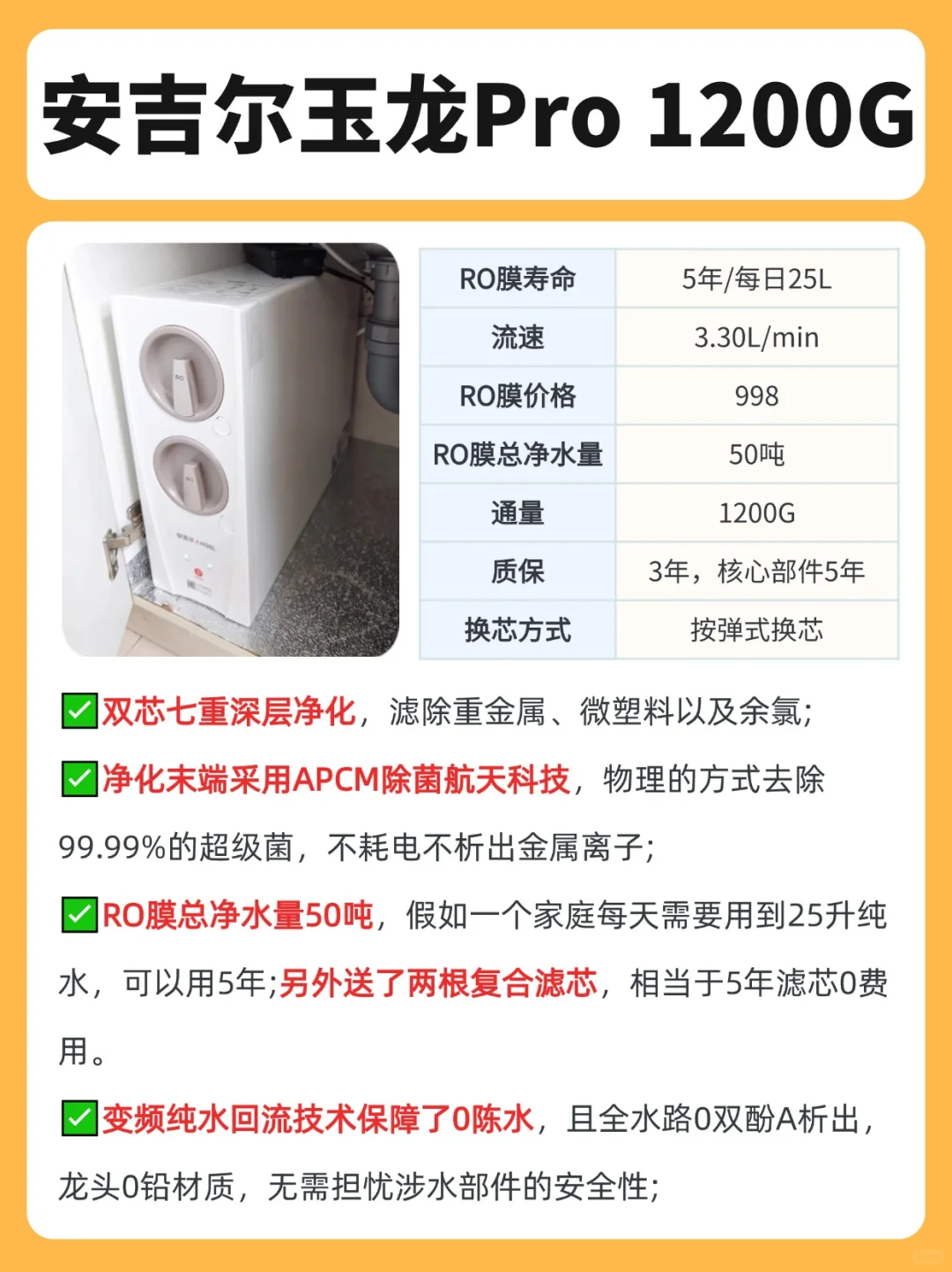 很值得一提的就是我家用的这款✅安吉尔玉龙Pro 1200G!