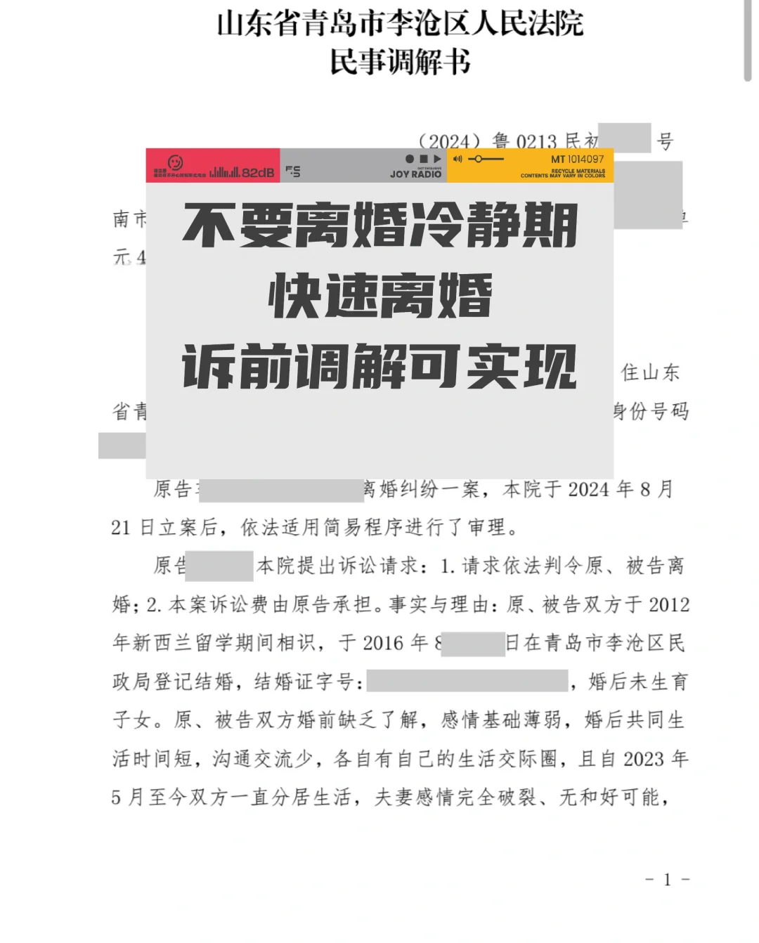 [庆祝R]如果你们双方只有离婚、孩子抚养权和不太多的财产,那相对是比较好调解的,能在30天诉前调解阶段完成离婚,希望比较大的,我们的成功案例调解率是66%。
