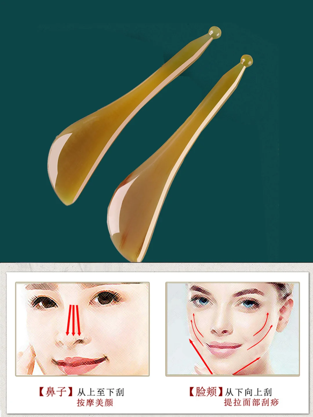 工具:牛角刮痧板拨筋棒 尺寸: 刮痧板厚0.7-1.0左右 拨筋棒长10-13cm左右 面部护肤品,水,乳,霜,面膜,软膜,精油,精华,防嗮 - 步骤方法: ⭐1.洁面、爽肤 ⭐2.展油、手指安抚面部 ⭐3.开穴(只做一遍),用手 印堂——攒竹——鱼腰——丝竹空——童子髎——球后——承泣——四白——睛明——迎香——颧髎——上关——下关——听宫——听会——翳风——拇指同时点人中、承浆——地仓——颊车——安抚全脸。 ⭐4.印堂➡神庭(督脉),拨经。 ⭐5.眉头➡发际线(膀胱经),拨经。 ⭐6.鱼腰➡发际线(胆经),拨经。 ⭐7.外眼角➡发际线(胆经),拨经。 ⭐8.用拨筋棒刀板平面安抚额头。 ⭐9. 用拨筋棒刀板侧刮额竖三线,先中间,后两边。 ⭐10.板侧横拉,手掌安抚。 ⭐11.鼻间➡鼻柱➡印堂➡发际线(督脉),拨经。 ⭐12.迎香➡攒足(胃经),拨经。 ⭐13.下眼眶➡太阳穴➡发际线,拨经。 ⭐14.上眼眶➡太阳穴➡发际线,拨经。 ⭐15.用拨筋棒刀板平面安抚上下眼眶。 ⭐16.瞳子髎➡听宫➡听会-耳门(胆经)拨经并经耳后至淋巴。 ⭐17.棒点承浆➡地仓➡人中(胃经),划人中一条线。 ⭐18.鼻通➡颊车➡听宫➡听会➡耳门➡翳风(胃经),拨经,并经耳后排到腋淋巴。 ⭐19.承浆➡颊车➡翳风(胃经),拨经,并经耳后排至腋淋巴。 ⭐20.双手搓热,分三线总排,经耳后排至腋淋巴(先一边一边排,再两边同时排)。 ⭐21.安抚。