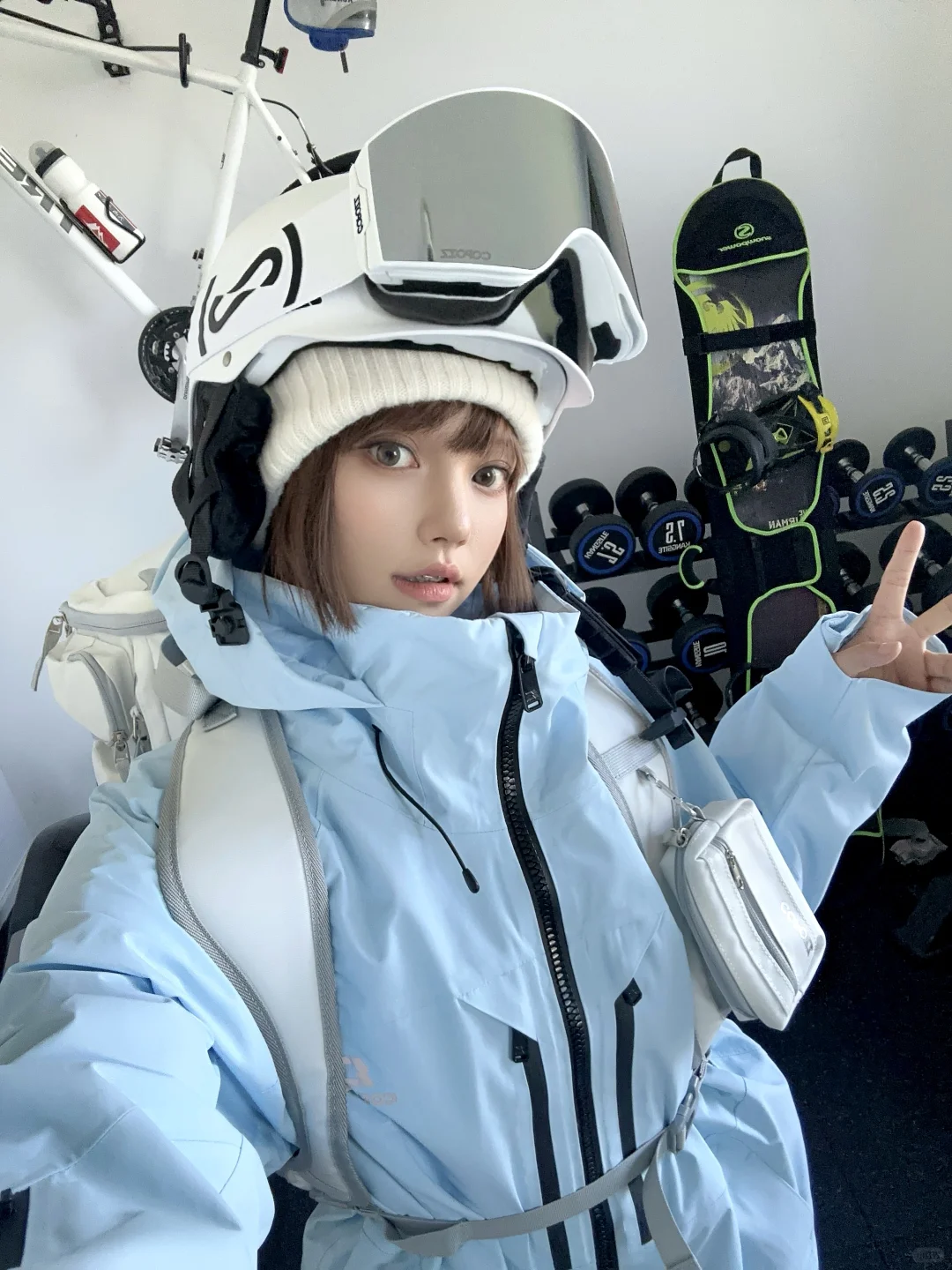 白色速干衣有点未来感[赞R] 这不是后面的雪板 感觉是要上太空了[笑哭R][笑哭R] baby蓝在雪场应该很出片吧[斜眼R] 有点帅又有点甜[萌萌哒R] 我看好多人都已经开板了 我还只能看看[皱眉R]