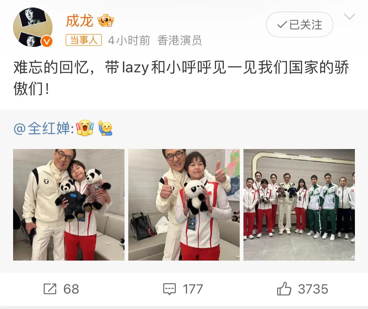 成龙转发了全红婵的微博,真的为国家争光的宝贝谁都喜欢。#成龙鼓励全红婵##成龙
