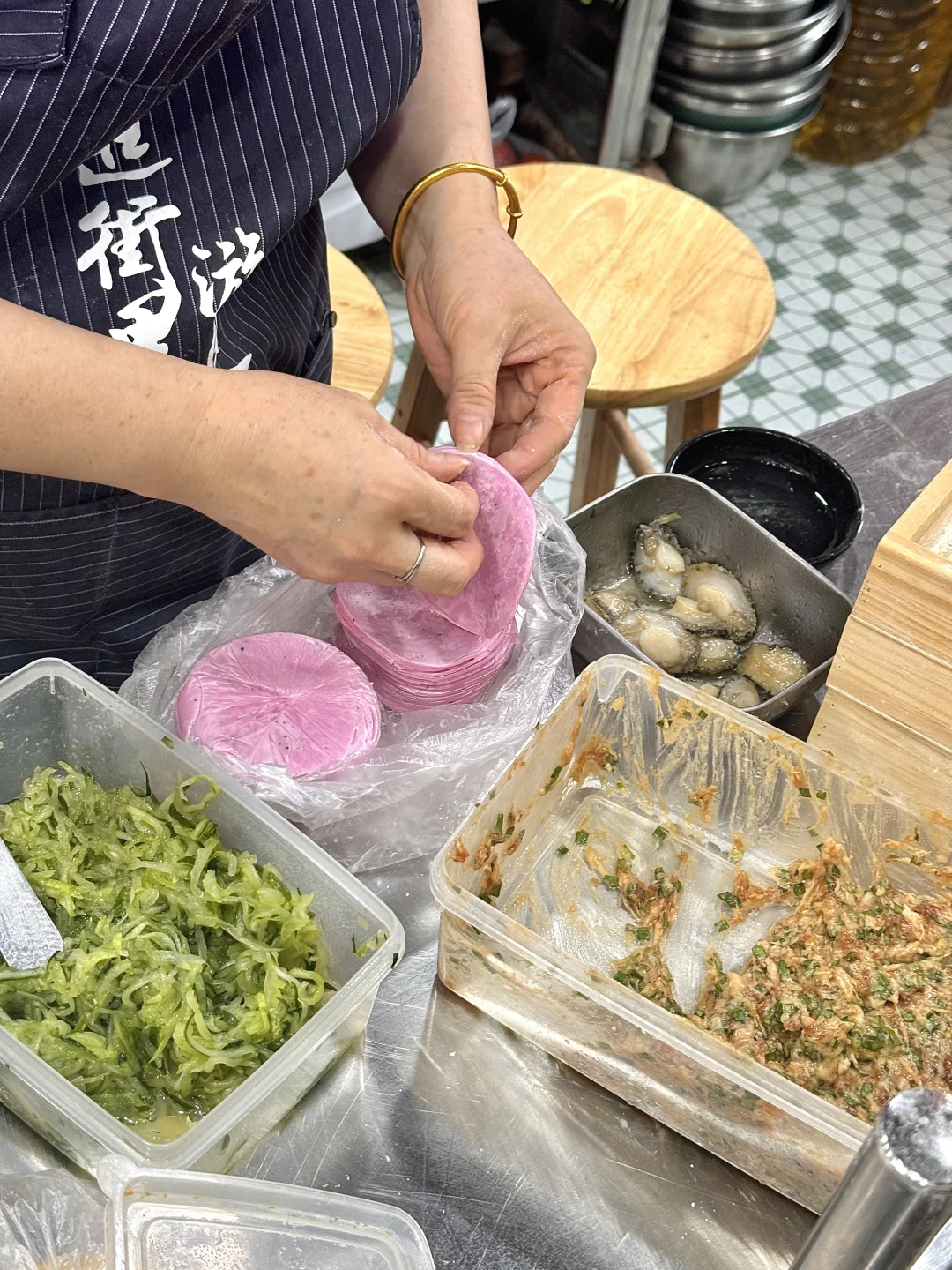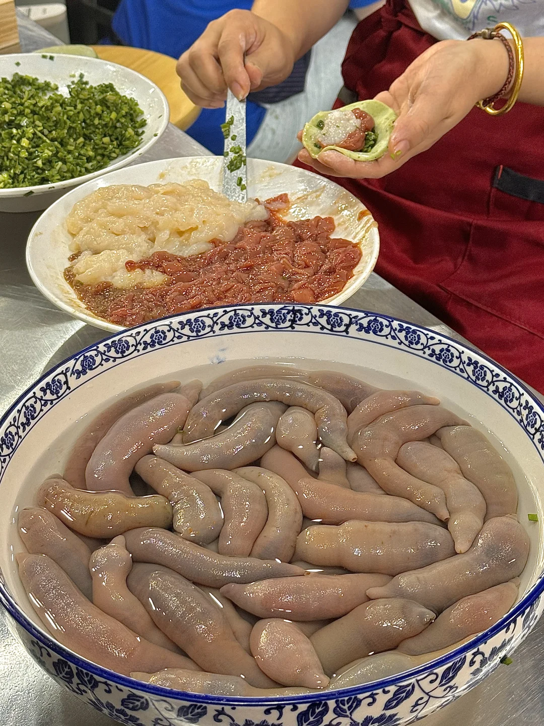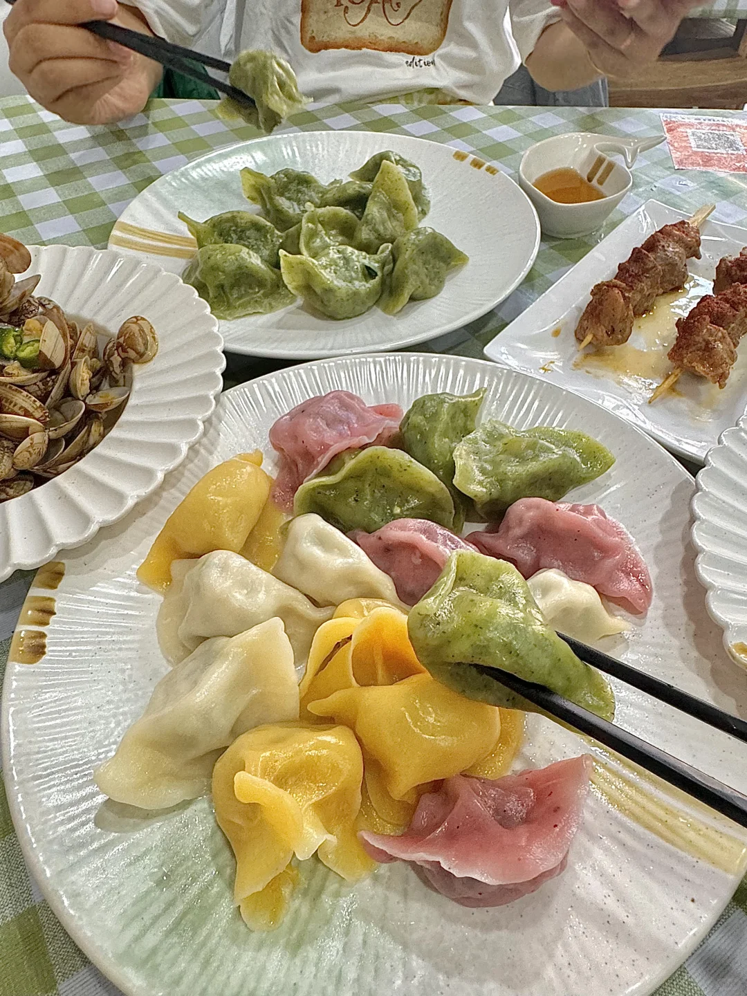没想到在老城区随便吃个水饺, 发现了一家宝藏店!! 明档现包!!虾、海肠什么的都是活的!! 活的海肠真的第一次见… 长见识了!! 而且现包现下的水饺确实好吃!! 关键性价比还高!! 推荐全家福的,一次性吃到好几种口味! 海肠的!!口感特别绝!嘎吱嘎吱的~ 贼爽脆!! 还有海胆的!!鲜迷糊了!! 料都很舍得放🥹🥹🥹 他们家还有点烤肉,本来想吃大肠但是卖没了😭 我们点了里脊,辣椒面嘎嘎香!!爱s了!