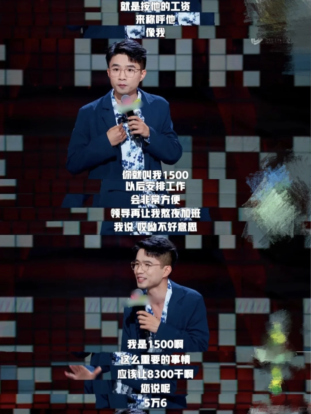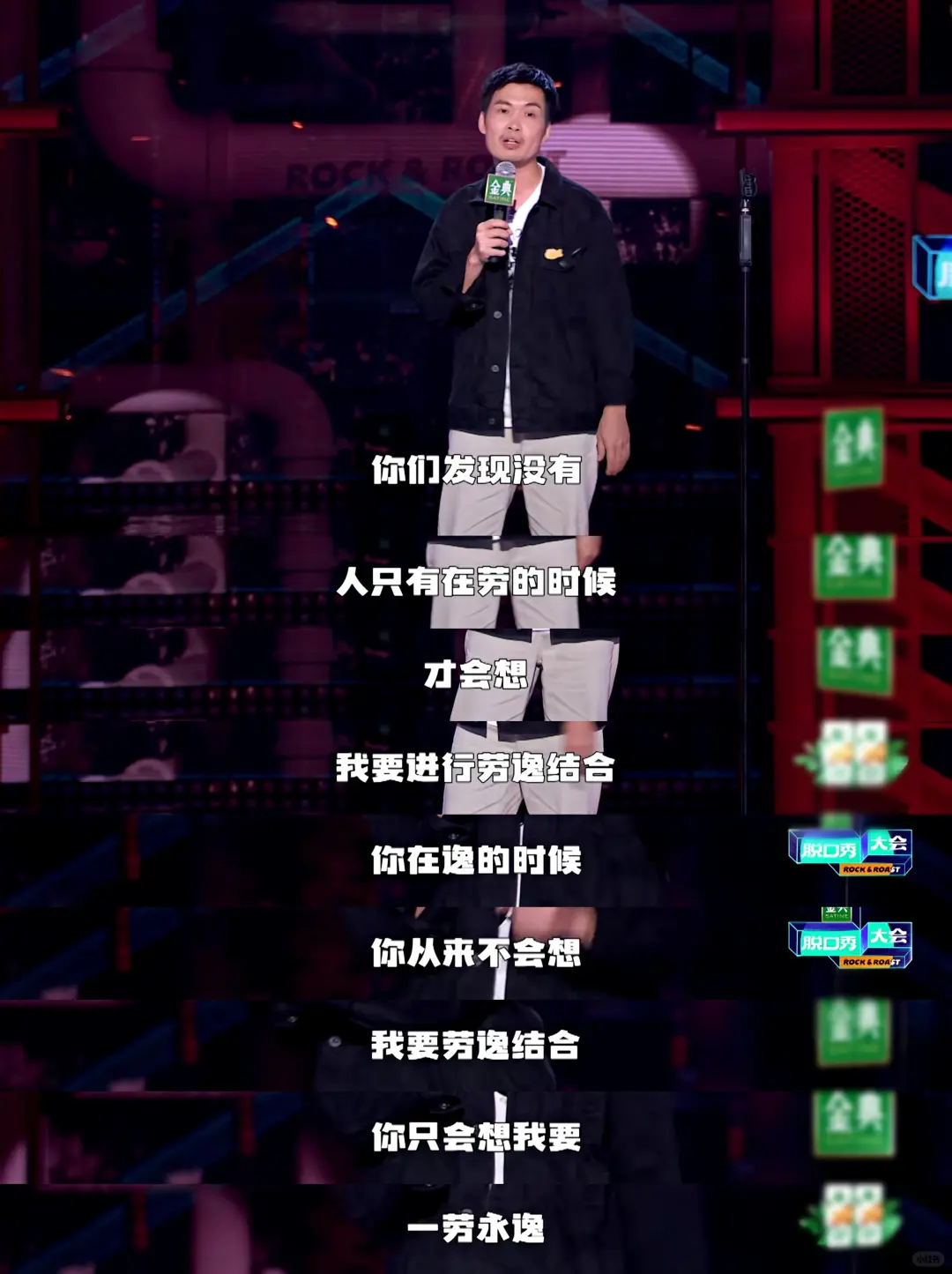 嘉宾有脱口秀和Ta的朋友们 的选手贾耗和江梓浩。贾耗今年节目上1500那个梗也很有意思。