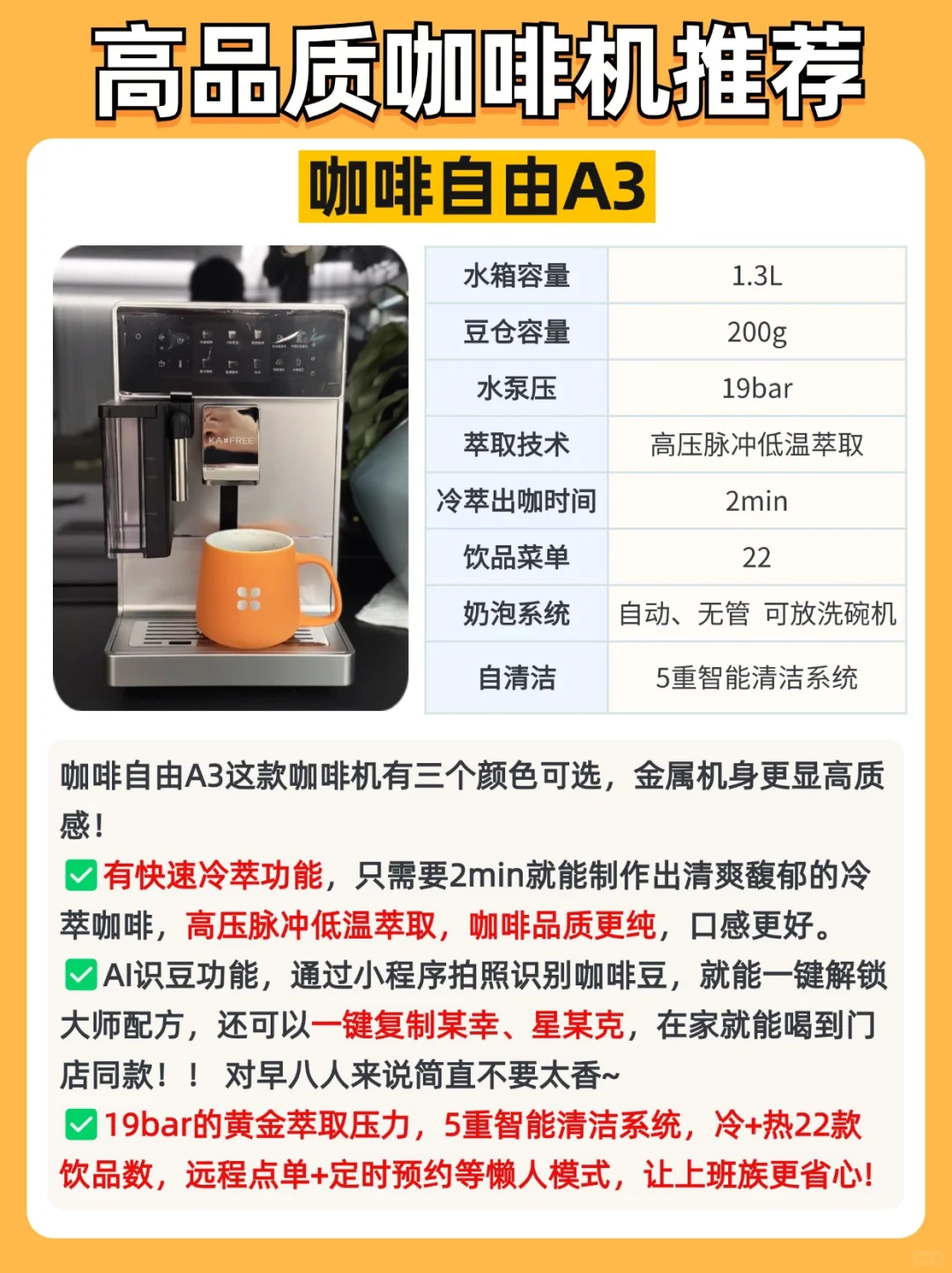 整理了3款市面上热门的全自动咖啡机,我选择了📌咖啡自由A3这款全自动咖啡机