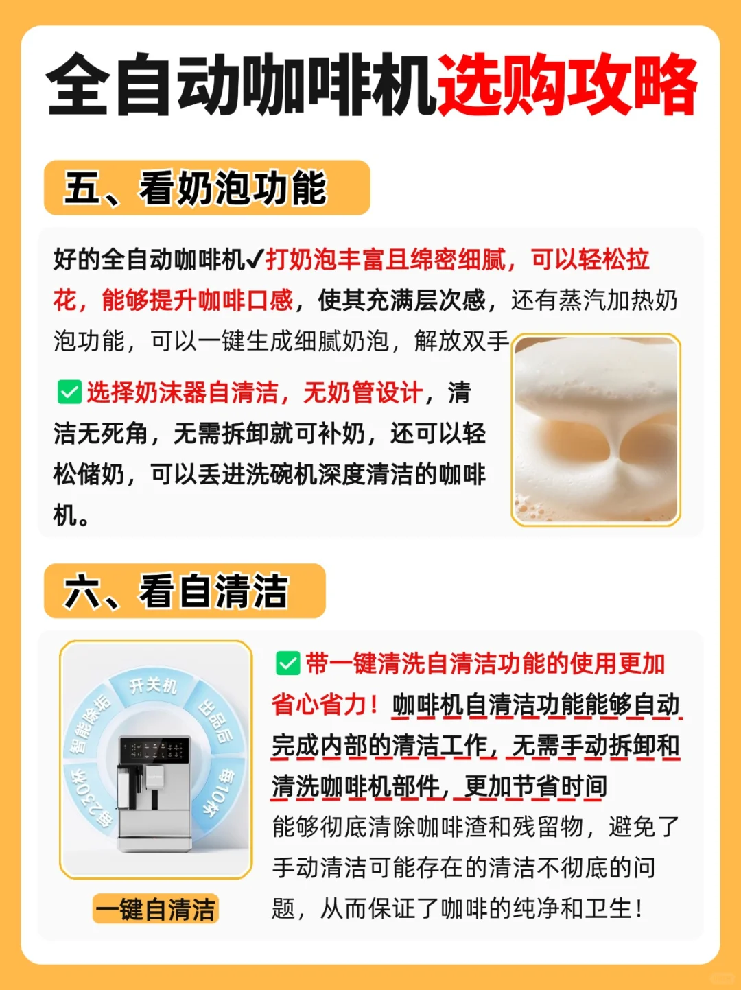 选择打奶泡丰富且绵密细腻的,能够提升口感,无奶管设计的更好,清洁无死角。