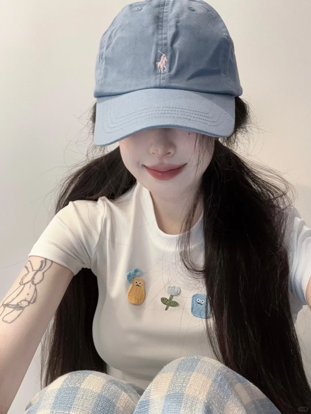 也是美美戴上噜 是蓝色粉标(新帽子已经被我弄皱了 我要去熨一下 心心念念的白色奶蓝和奶黄皮扣也一举拿下 其实在淡蓝奶蓝浅蓝里面纠结了很久 但是粉标太蛊了 下一个应该是粉色噜