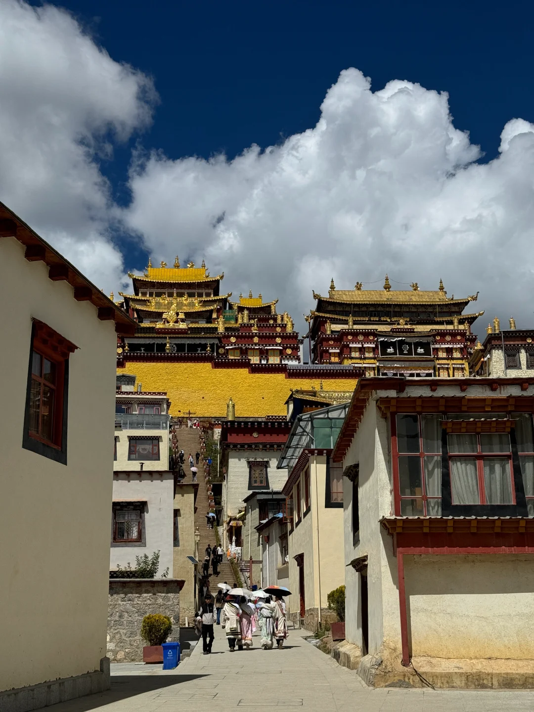 ✔️出来后到对面的小山坡上拍松赞林寺的全景比到湖对岸要省时省力一些