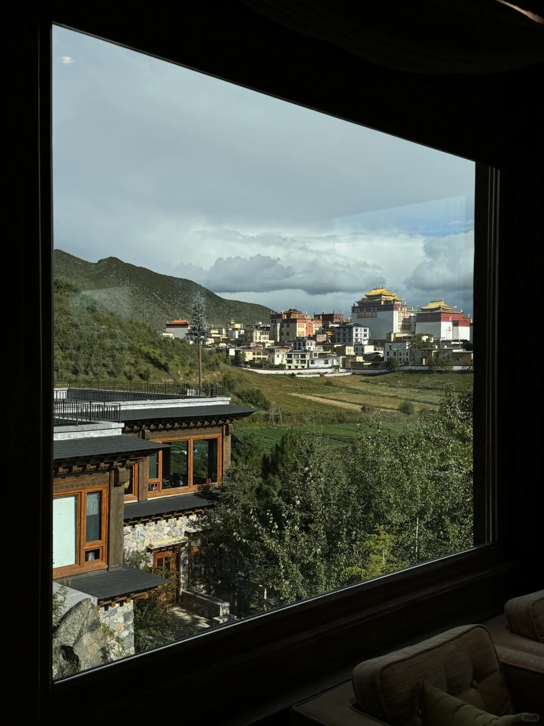 ✔️松赞林寺后面有一家松赞林卡酒店(有条件的可以直接住一晚 会有接驳车接送景区 如果想从景区去要么坐黄牛车上去 要么走上去 走上去将近2km 还是建议花点钱坐车吧😢)里面有全国蕞美始祖鸟还有酒店下午茶 窗景好美 面包店不推荐