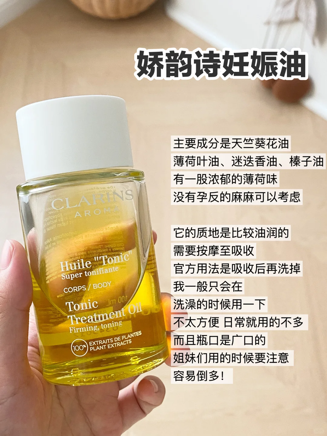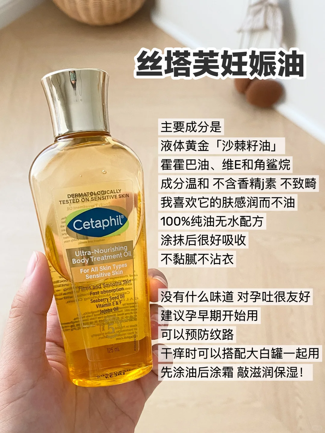 我比较喜欢它的肤感,润而不油,100%纯油无水配方,涂抹后很好吸收,不黏腻不沾衣,没有什么味道,对我这种孕吐严重的很友好,建议姐妹们孕早期开始用,可以预防纹路,干痒时可以搭配大白罐一起用,先涂油后涂霜 敲滋润保湿!