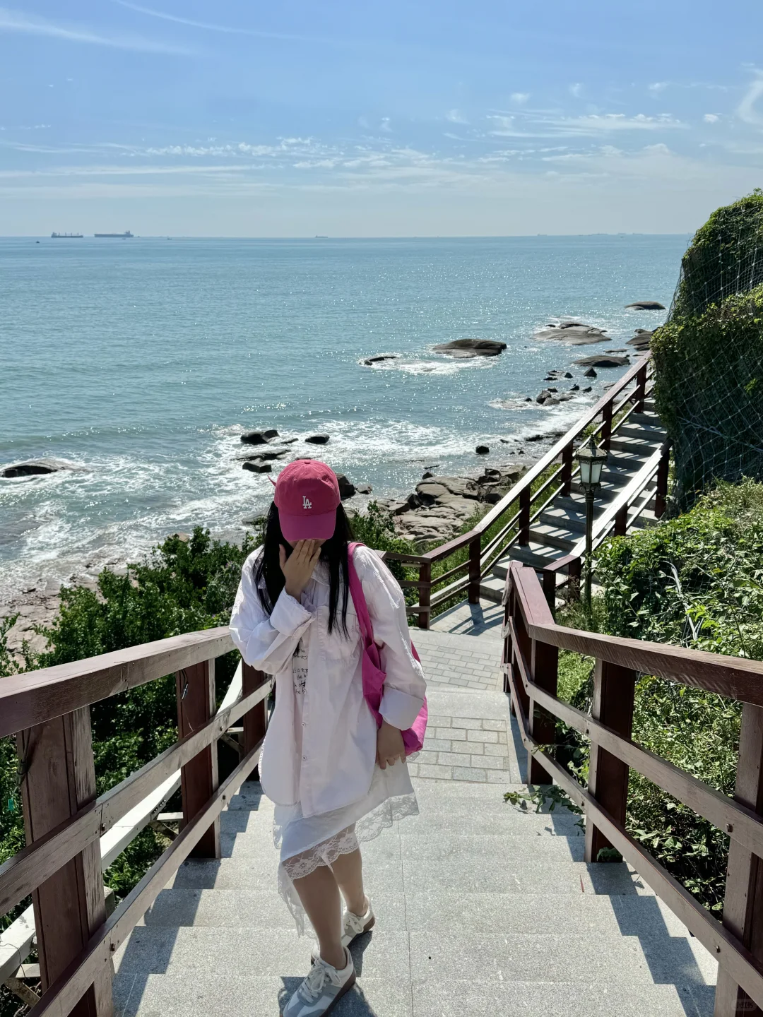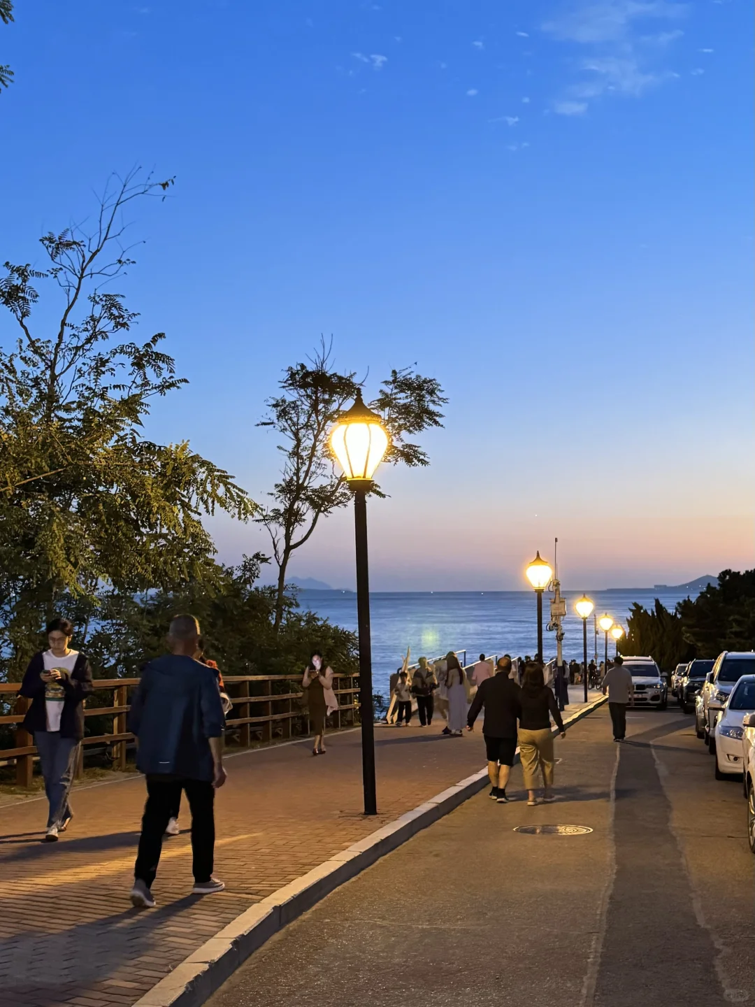 最近青岛天气真的好好! 没有特别热 海风吹的很舒服🌬️ 这个看海公园真的绝了 不说还以为在济州岛 - 📍打车可以定位燕儿岛公园北2门 直走到头就是这个木栈道 往前走还有海滩、咖啡厅和树林公园🍃 给大家总结了几个拍照机位 1️⃣通往大海的木栈道 2️⃣🌸花海旁的木栈道 3️⃣爱心型看海草坪🍃 4️⃣通往大海的灯塔小路 - 晚上还吃到了我心心念念的烤肉! 🥭芒果好大颗 各种韩式小吃好满足 -