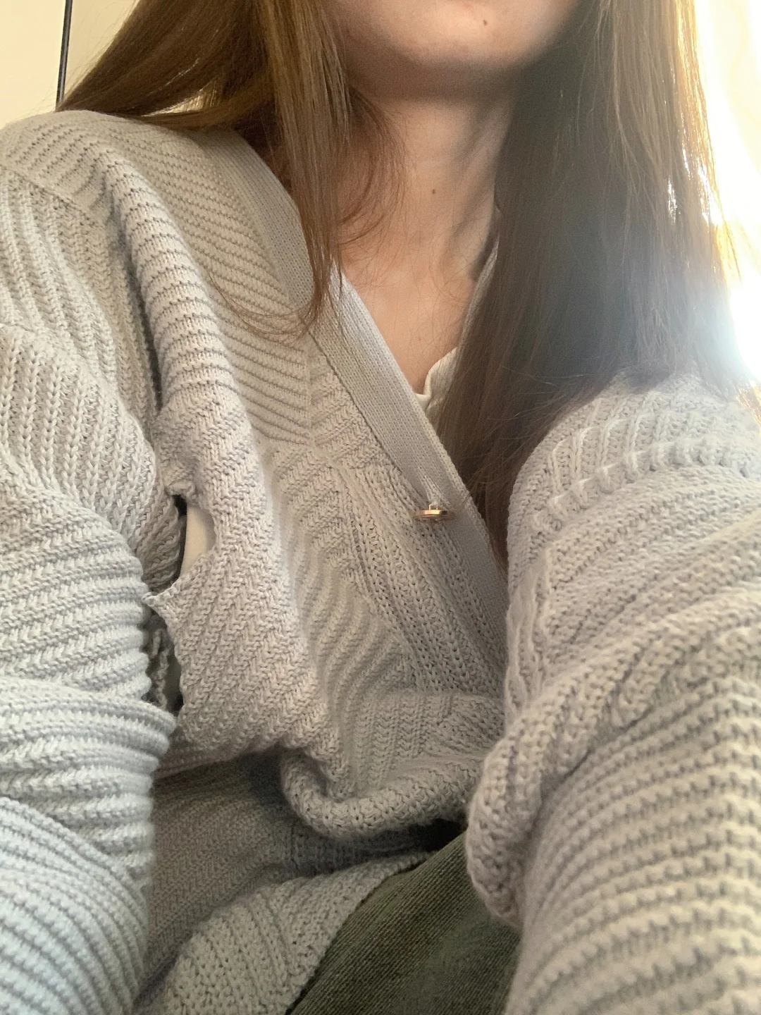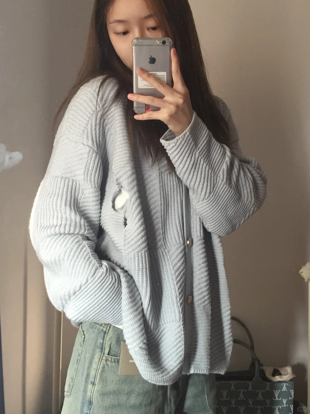 这款毛衣有个小设计,就是胸前有块镂空的,觉得还蛮独特的