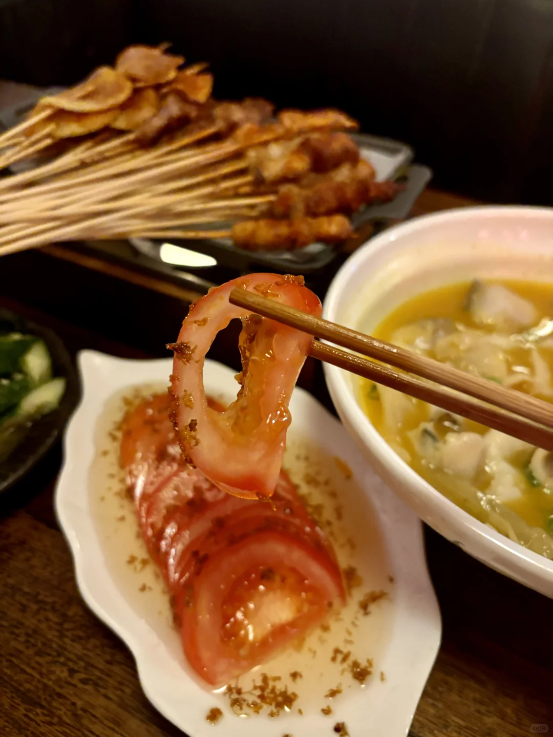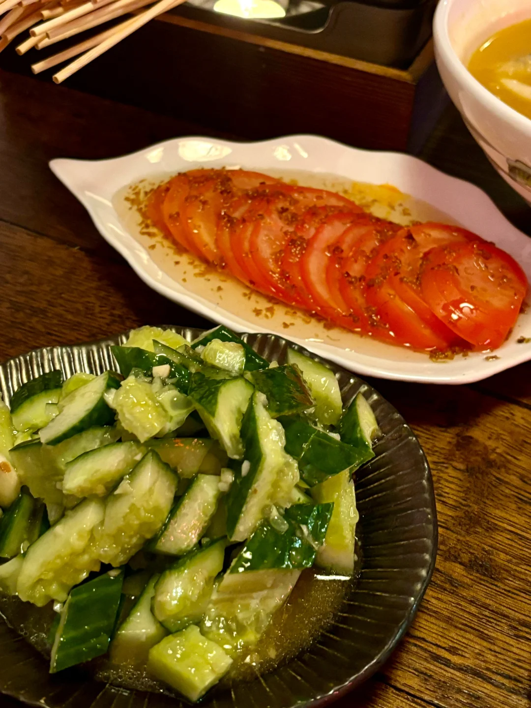 凉菜方面整了拍黄瓜和桂花糖番茄,都不错很解腻