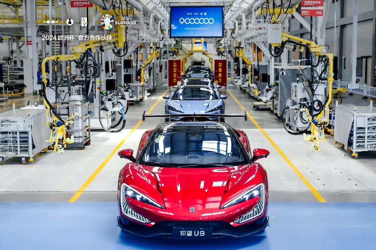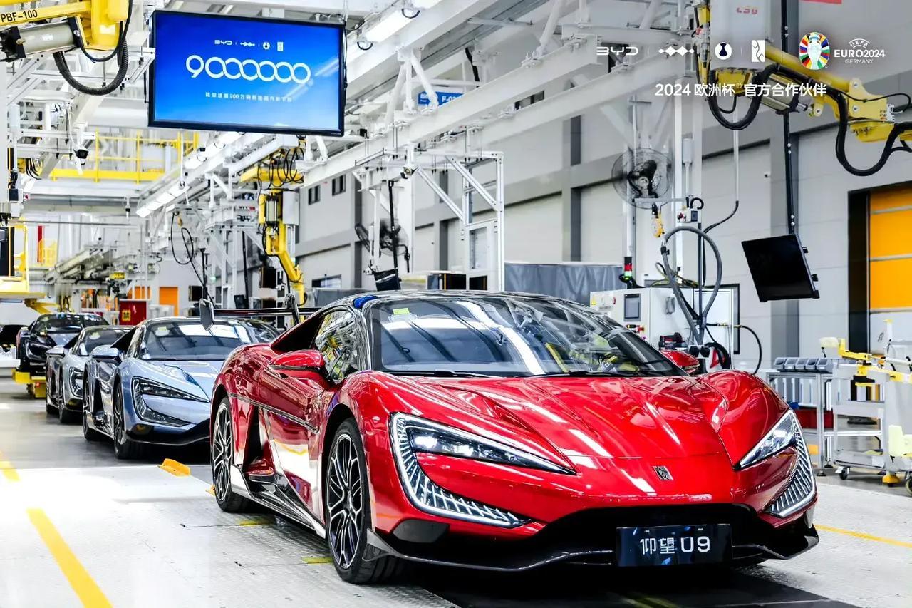 #比亚迪第900万辆新能源汽车下线# 比亚迪汽车第900万辆新能源汽车仰望U9是仰望家族的第二款车型,售价168万元。 仰望U9是国内首次运用碳纤维作为车身结构件的量产车型,它的碳舱使用的是航天火箭上的T700级12K宇航级碳纤维材料,密度仅仅只有钢的五分之一,强度却能达到钢的5到6倍。 仰望家族第一款车U8上市一年销售8120辆,这也是国产汽车百万级价格销量最多的一款车(图4)。 从第800万辆到第九个100万辆新车的下线比亚迪汽车用了83天,那么,第十个100万辆也就是第1000万辆,比亚迪汽车要多少天可以达成呢? #比亚迪# #比亚迪新车随谈# #比亚迪新车展望#