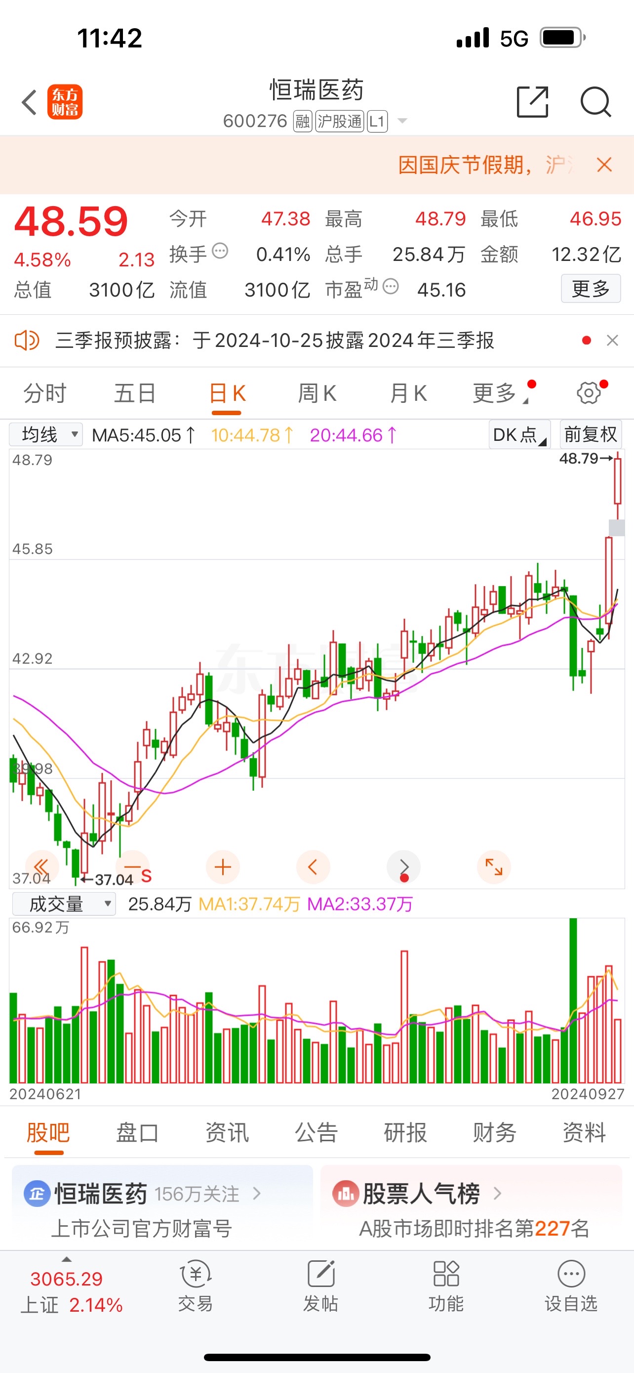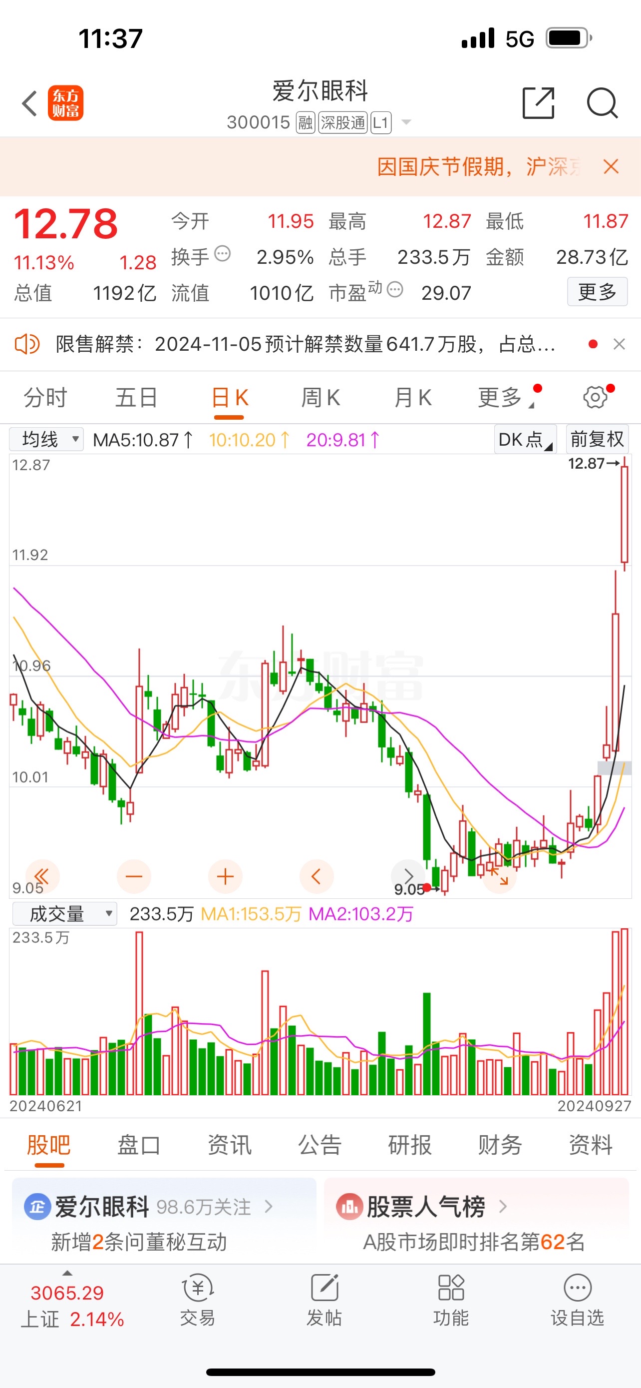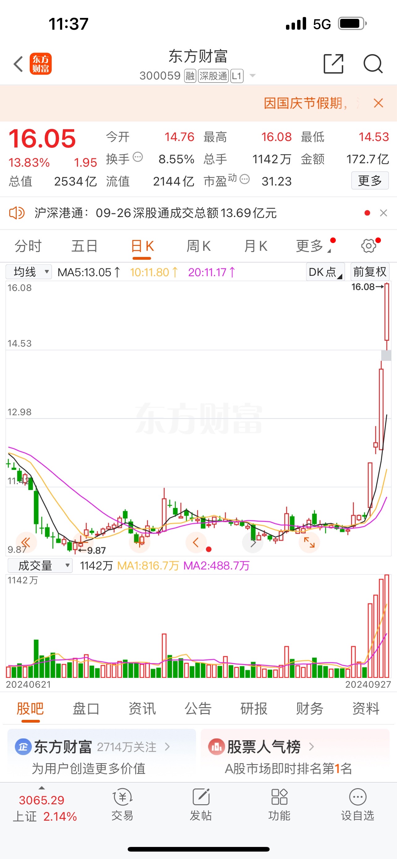 这个国庆最开心的肯定是股民啦😄😄😄…哈哈哈,大家发财,涨涨涨🤑🤑🤑#