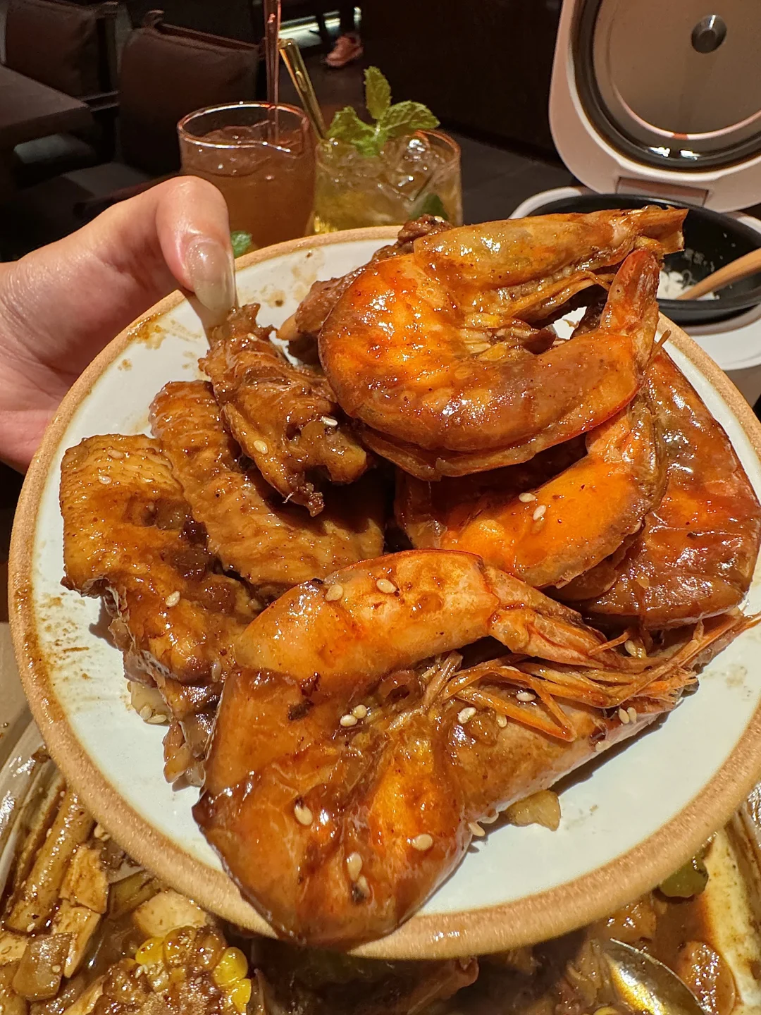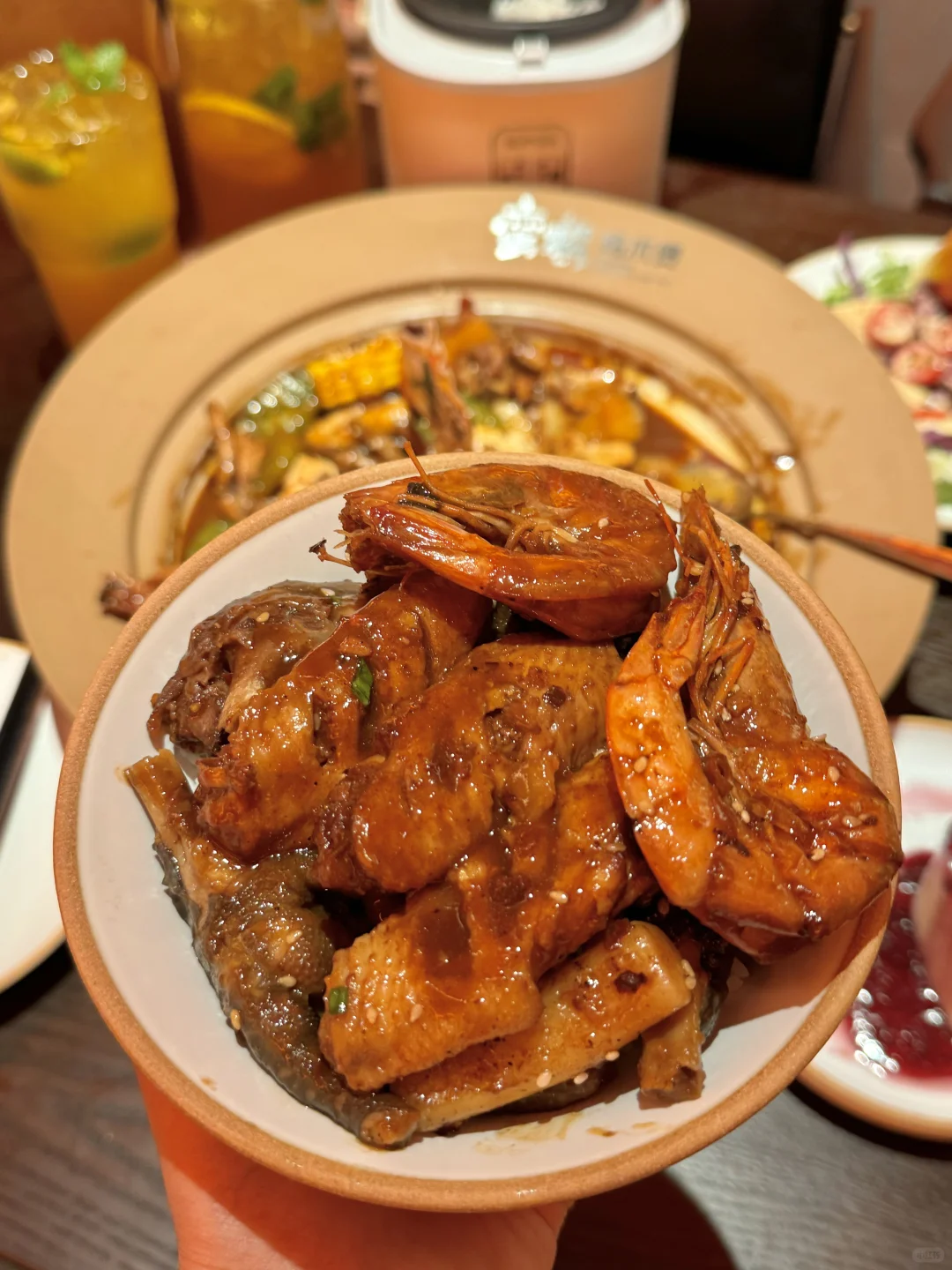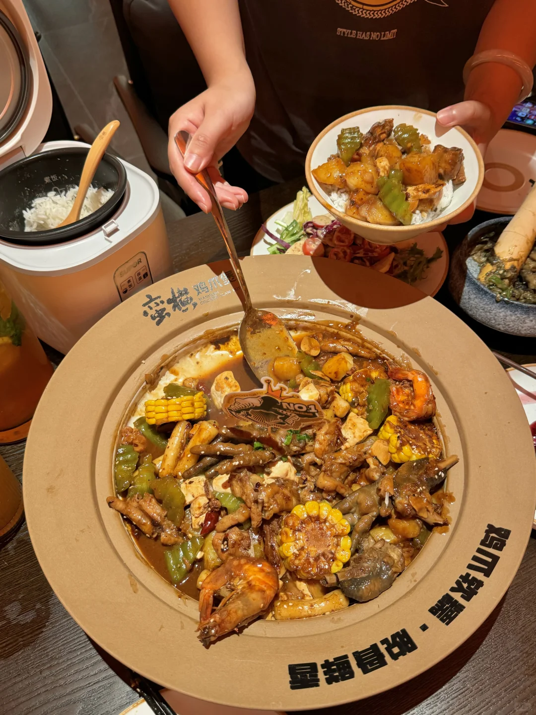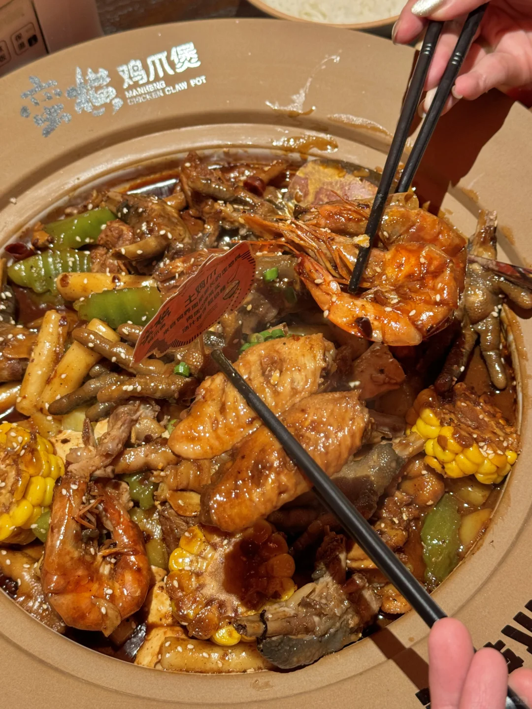 金狮真的太宝藏了!! 在这吃到了jujuju好吃的鸡爪煲! 之前在别的城市吃到过他家!! 量真的足…老大一盆!! 配菜有鸡爪、鸡翅、土豆、莴苣都好好吃 鸡爪软烂脱骨!!贼入味!! 还有龙虾尾、肥肠、明虾煲 都超下饭🍚 我平常都不爱吃主食,在他家盖饭吃了满满一碗!!