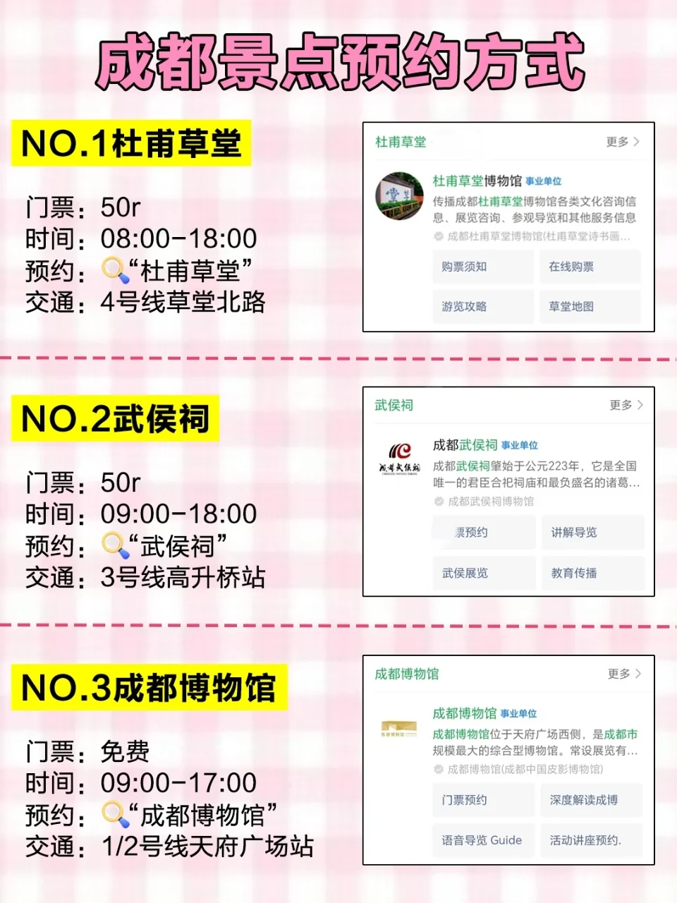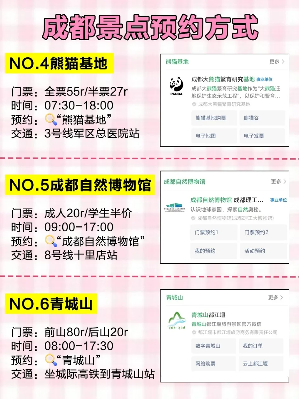 第一次来成都旅游的姐妹们一定要记得提前预约❤️特别是现在暑假一些热门景点如果不提前预约会排队很久...