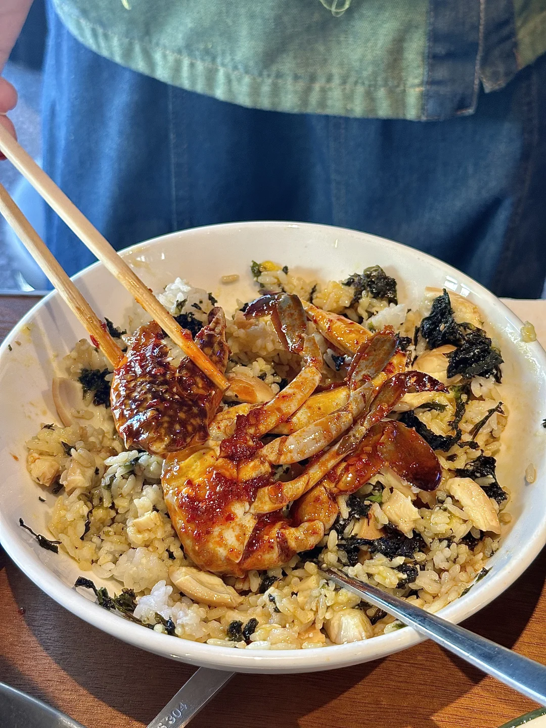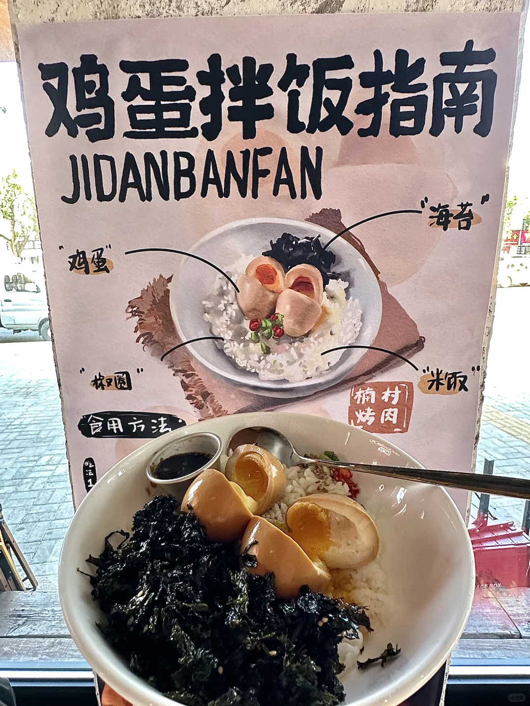 还有鸡蛋拌饭!!溏心蛋拌饭再挤点免费酱蟹的蟹肉!!
