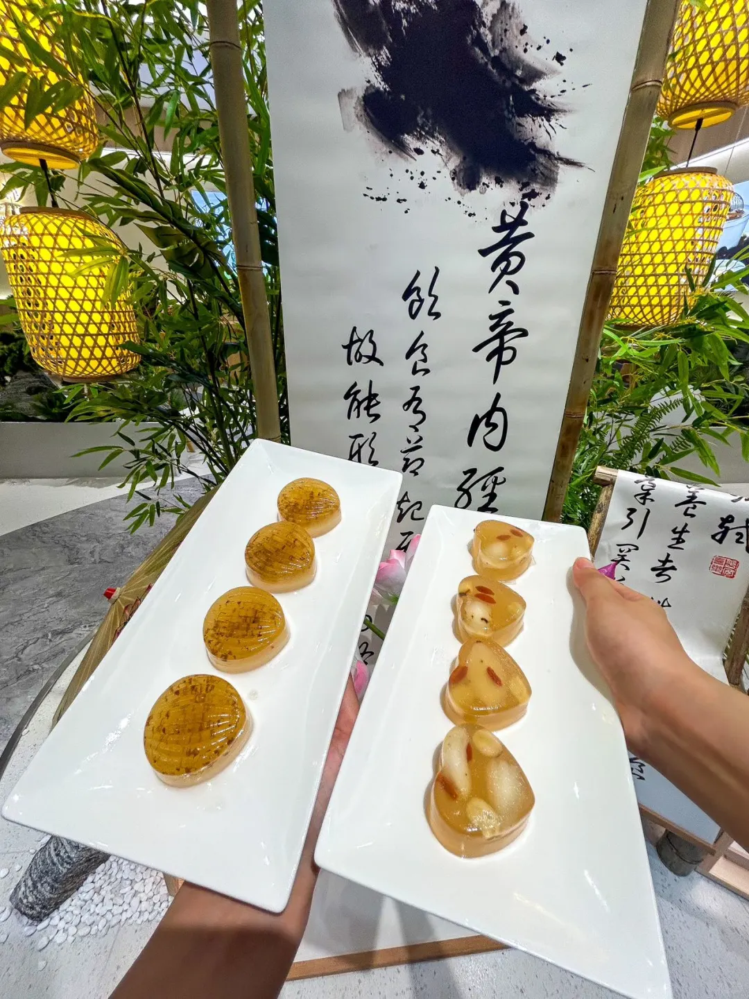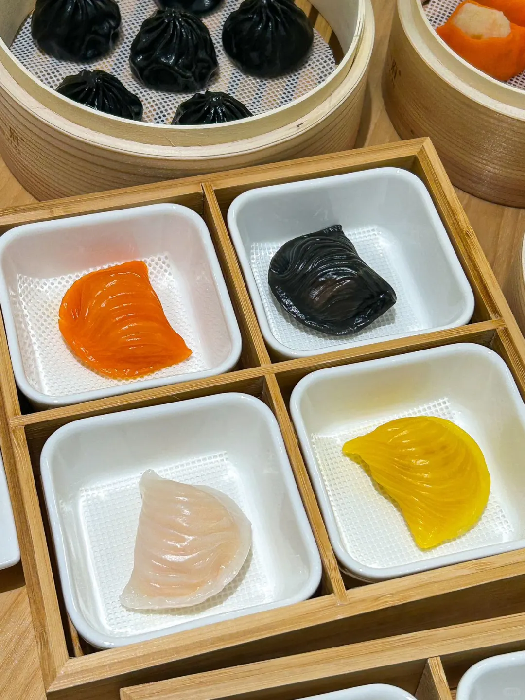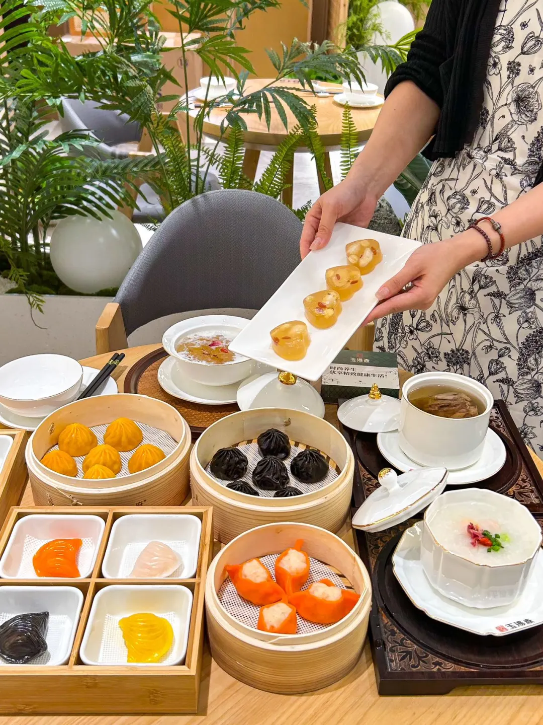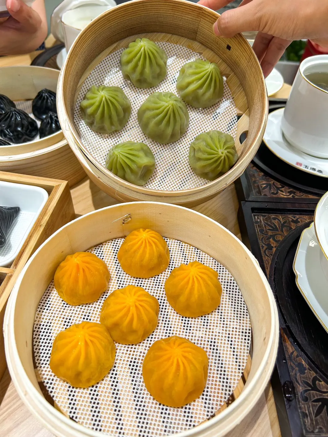 真的没想到!这家主打养生的餐厅出品这么精致❗️中式包点小巧一只,颜色也吸睛~🍃环境就更别说了,书法和绿植点缀的餐厅,随手拍都好看