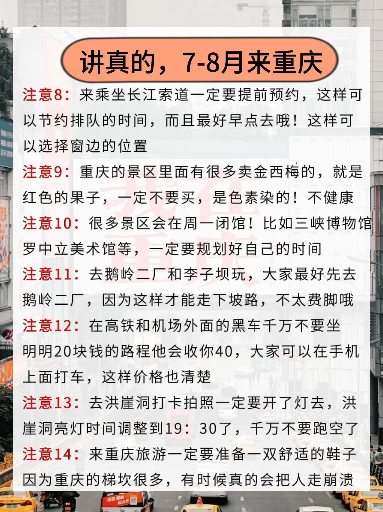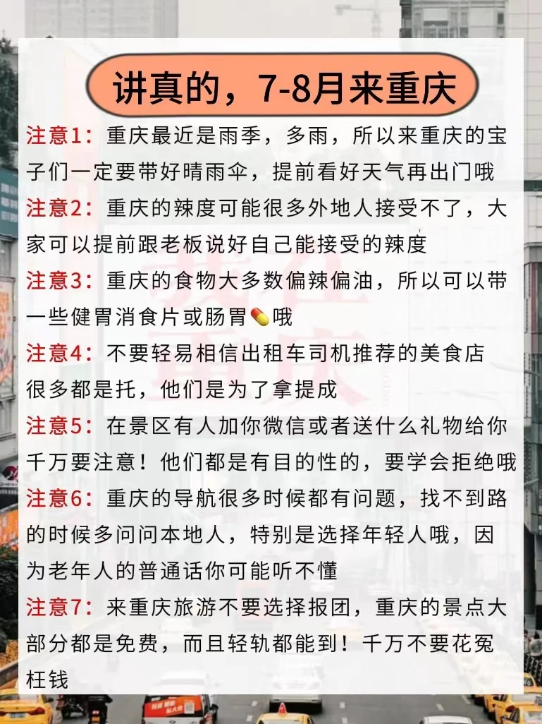 重庆游玩必注意事项
