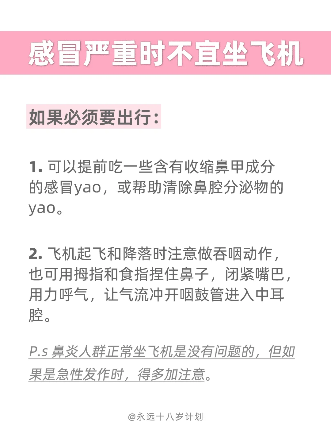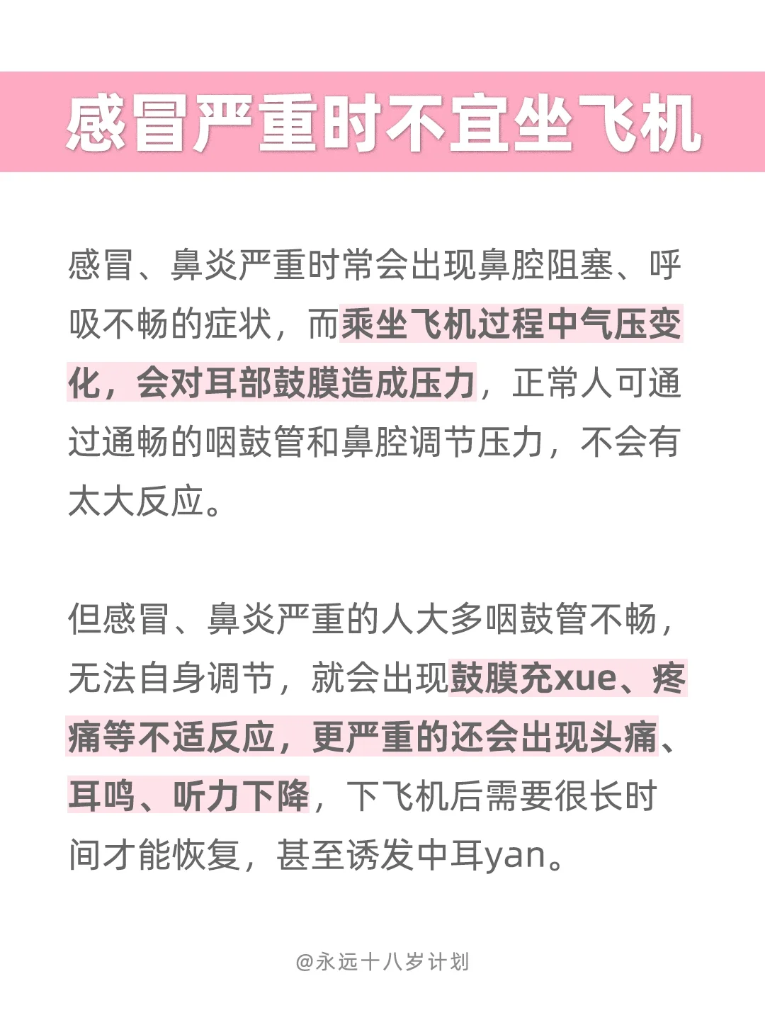 永远十八岁感冒严重时不宜坐飞机