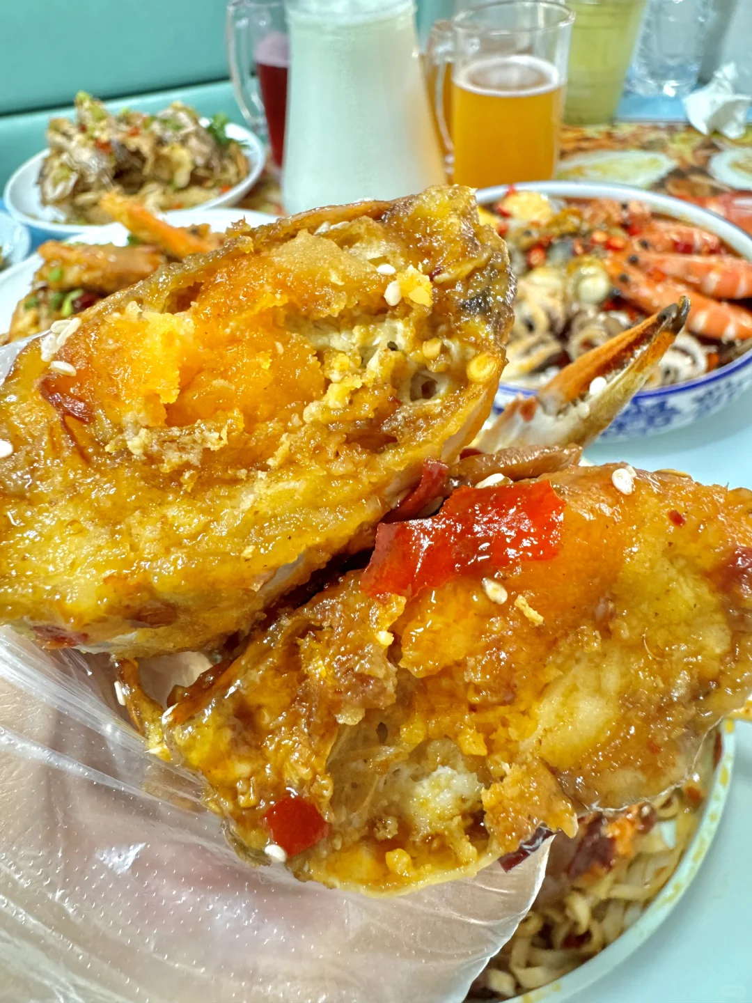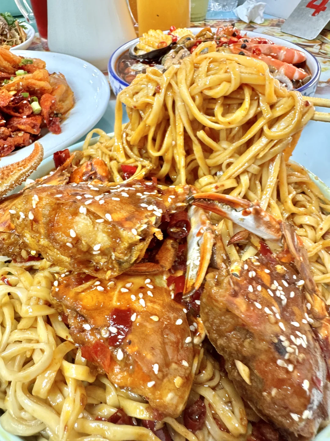 青岛真的太好吃了!!! 吃一次想三天😭 八爪鱼🐙这玩意真好吃啊!!口感太Q了!!咯吱咯吱的口感蘸着汤汁真的绝! 海螺都选了水煮的,就旋转出来的时候很治愈!!老大一个了!! 螃蟹没开海之前不算便宜,但正好看到门口来的螃蟹,活蹦乱跳一看就新鲜!! 朋友爱吃香辣口的,做的香辣蟹拌面!! 蟹子蛮肥的里面的面条也很入味!!酱汁裹着面条嘎嘎香!! - ⚠️Tips: 1⃣️不要盲目相信路边拉客的!直接拒绝就可以,防止被宰! 2⃣️加工价格现在全市场都是统一价格