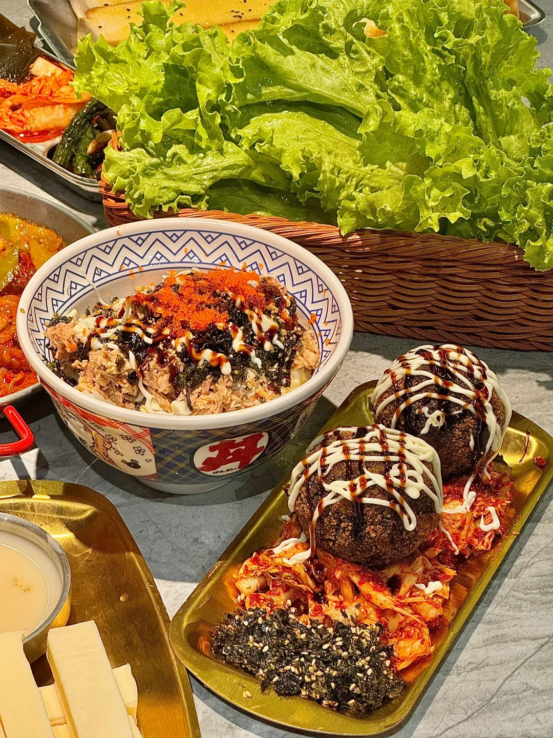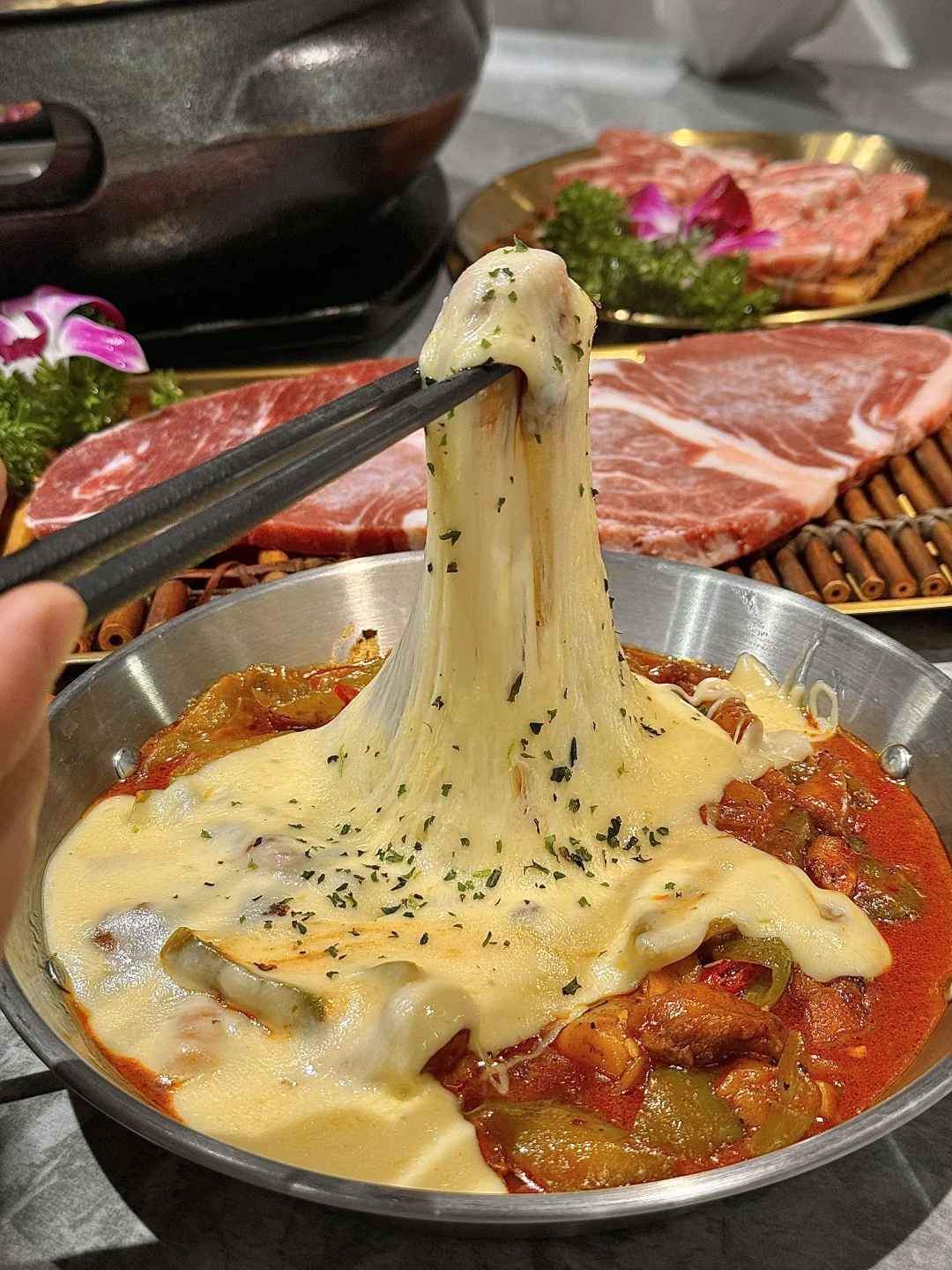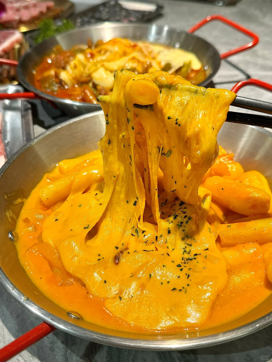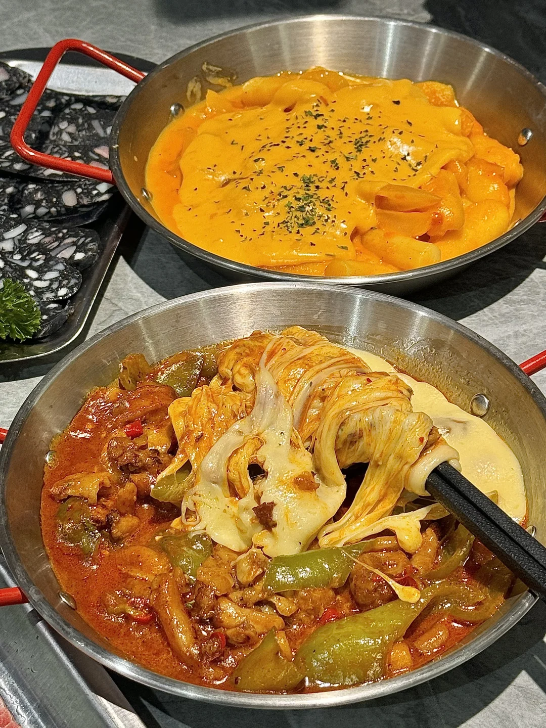 又是羡慕黄岛人民的一天… 吃到了一家又好吃性价比又高的一家店!! 罗杰芝士年糕的芝士放的贼多!!跟瀑布似的…芝士脑袋真的一吃一个不吱声!! 墨鱼肠真的贼Q弹!!吃起来又鲜又好吃!! 秘制牛肋条用生菜包着肉和泡菜!!一大口太过瘾了!! 芝士条奶呼呼的芝士条裹满炼乳真的香迷糊了!!