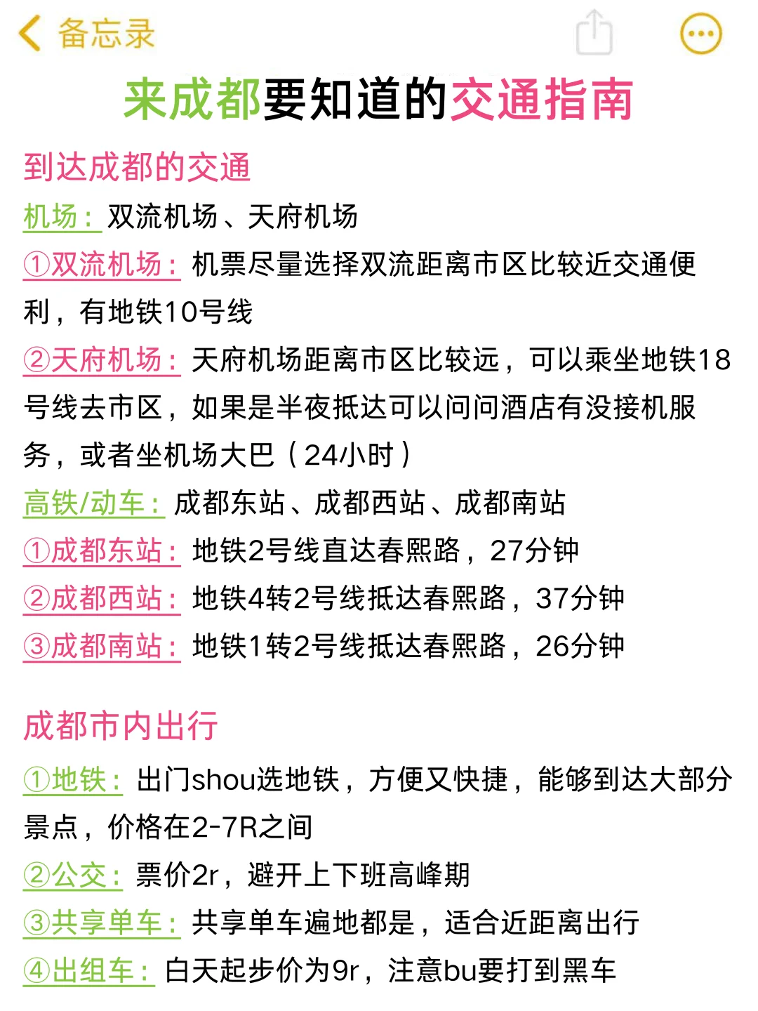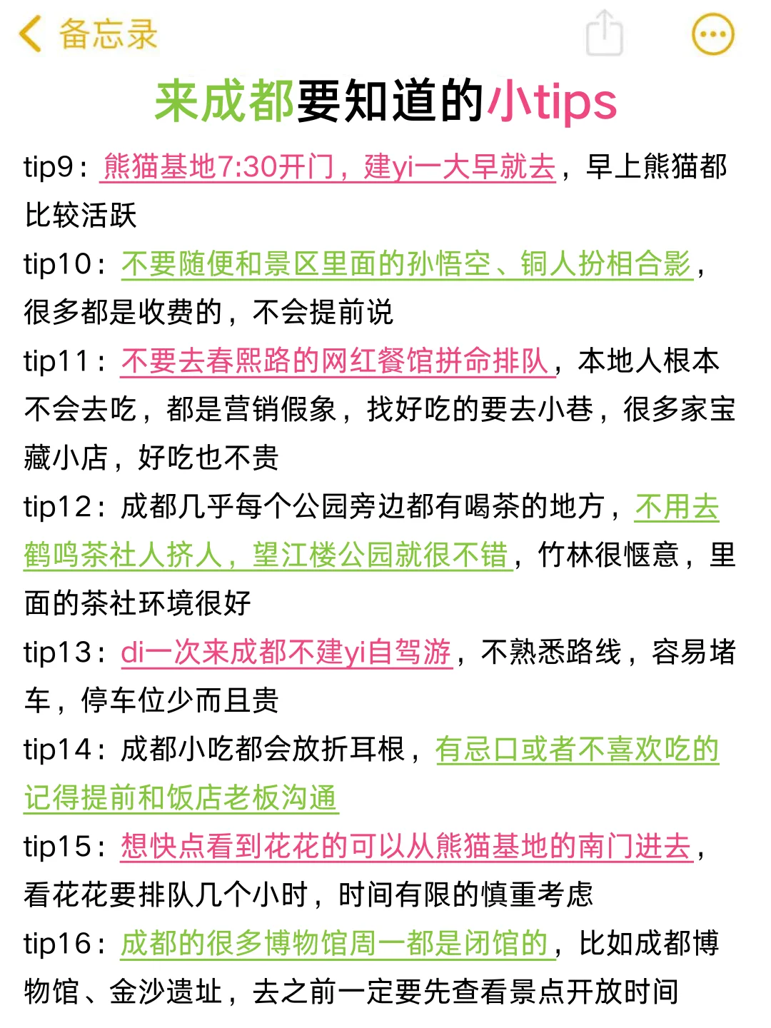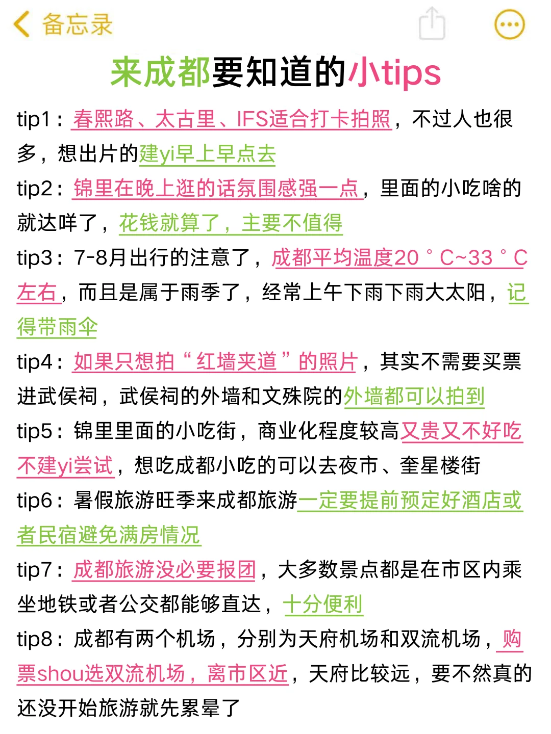 回来后将自己在成都的行程做了下总结✅