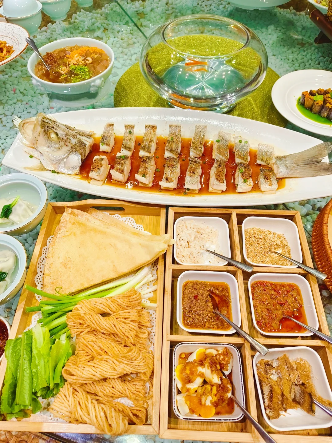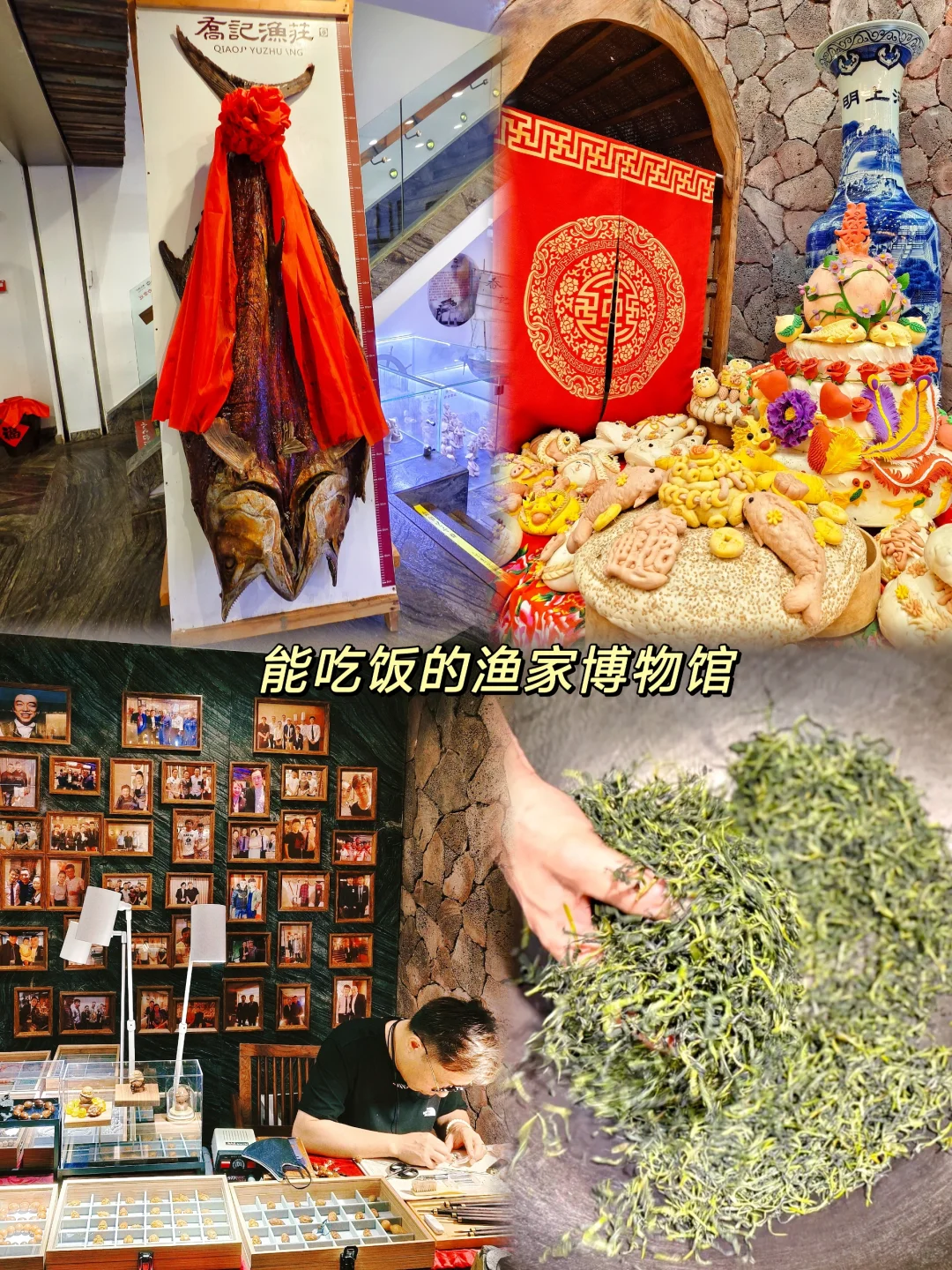 这是一家号称能吃饭的渔家博物馆,他真的做到了! 每次外地朋友来青岛,必须直奔这家,宴请客人真的超有面儿👍 ❤️他家装修大气且特色,里面有各种非遗展示:雕刻、炒茶、青岛捕鱼工具、古董等。在这不仅能看到大姨手工制作的特色煎饼,还能看到特色山东花饽饽,十分有趣。 📍地理位置超级好!离着五四广场步行就可以到!吃饭完一定不要着急走,去顶楼的天台看看青岛的夜景,整个五四广场尽收眼底,真的超治愈