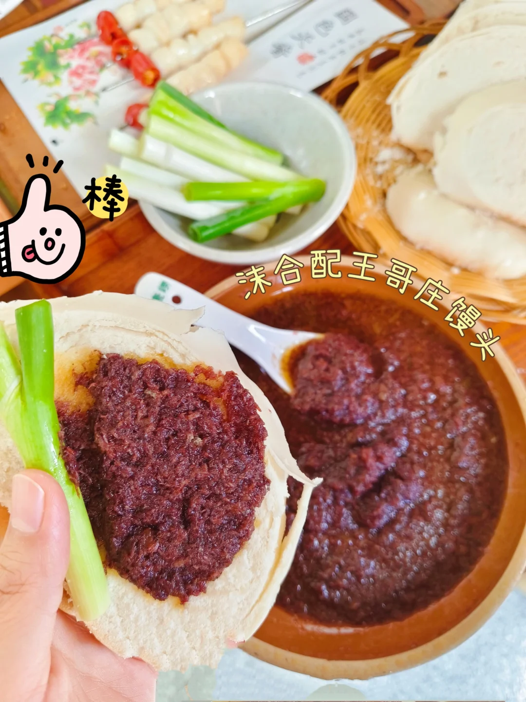 ✔沫合配王哥庄大馒头:青岛人都很认王哥庄的馒头,馒头松软且越嚼越香,配上沫合和小香葱简直太下饭了。