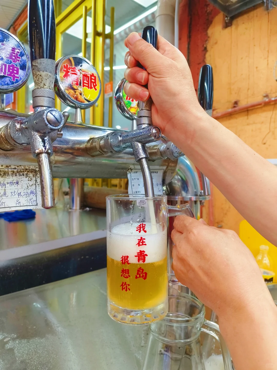 你们要城市烟火气,我在亮亮啤酒屋找到了❗ 老远就能看见他家门口坐满了人,青岛的晚上一点都不热,在室外吃海鲜哈啤酒也太青岛了 ⭐吃海鲜一定要点青啤!!来自青岛人夏天的快乐,你真的你来体验一吗?