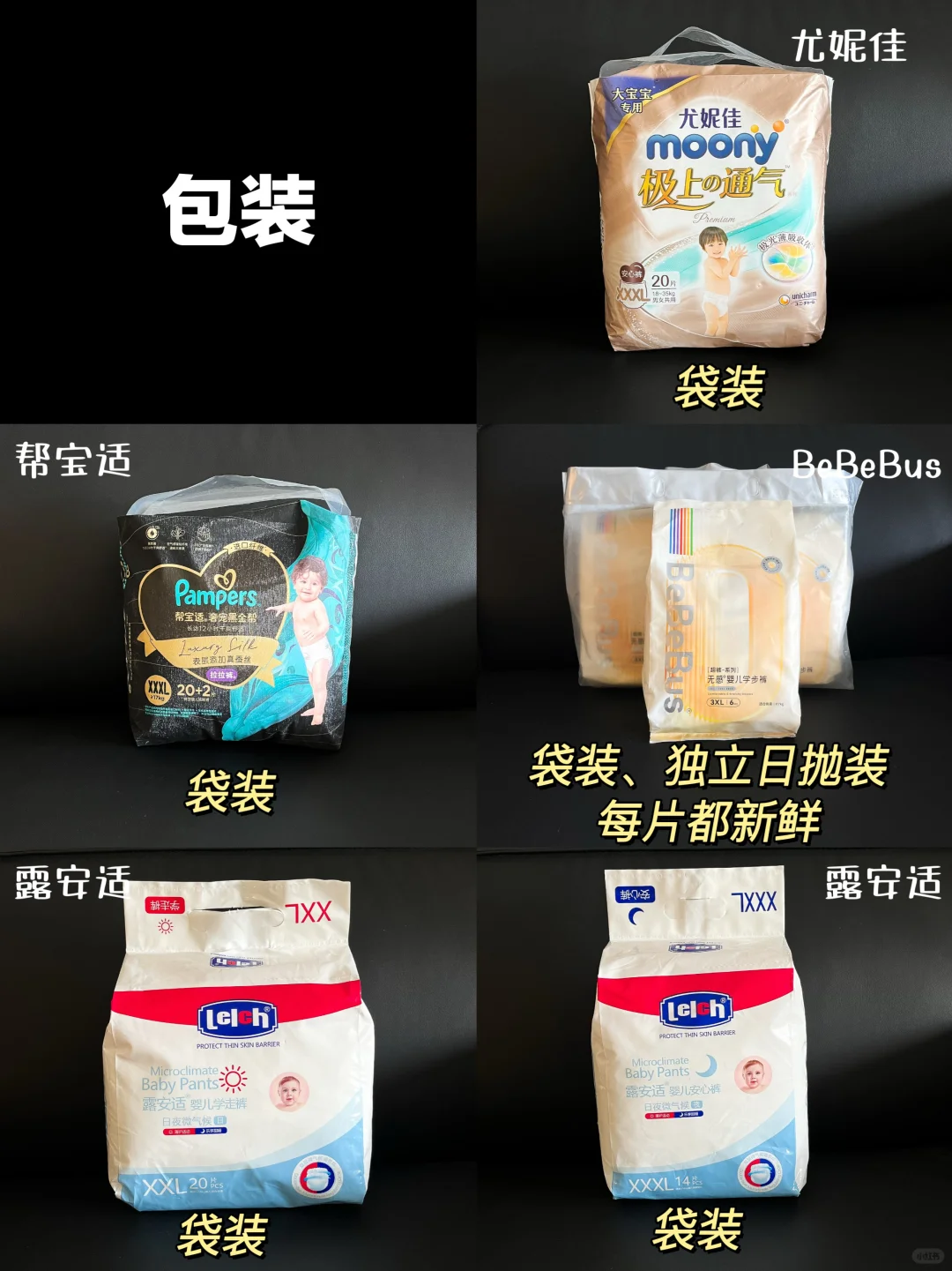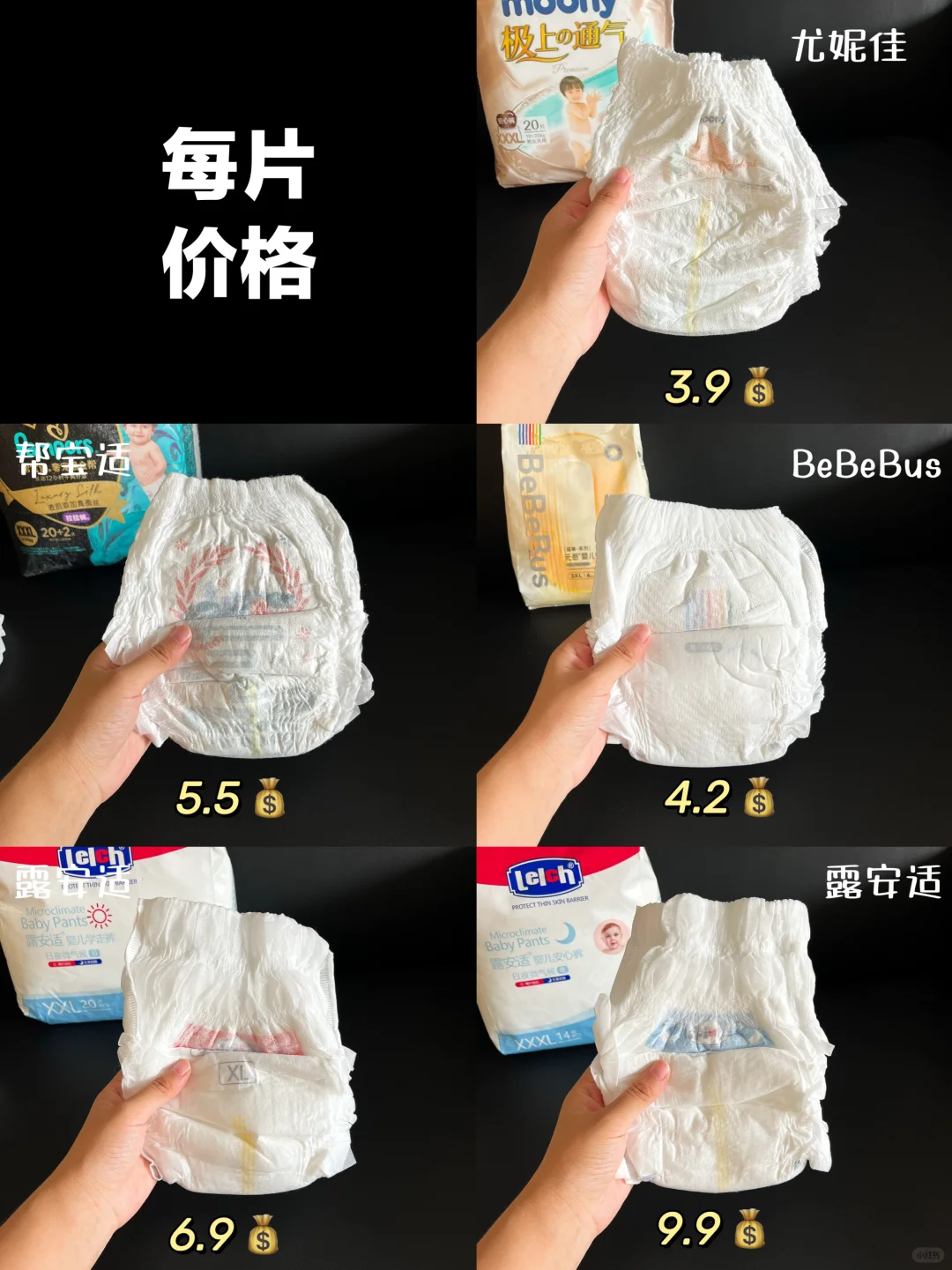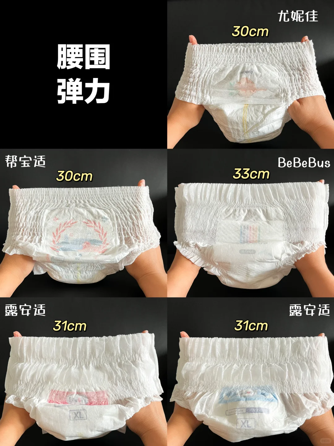 具体参数都在图⬆啦,姐妹们可以认真看,按需选择,我家娃比较常穿的是BeBeBus超裤拉拉裤,我家这个皮猴子,肚肚大还好动,穿它不会勒出红印子,料子轻薄不怕闷红PP,不用麻烦的日夜分护;很爱日抛装,不用分装,出门带贼方便~