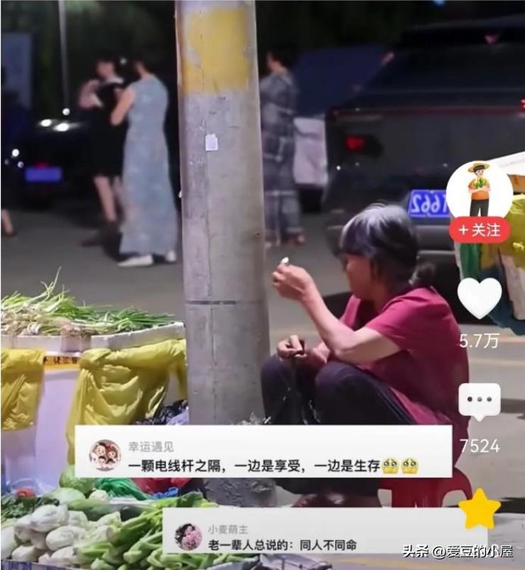一根电线杆,隔开两个世界。 一个是生存,一个是生活。 华灯初上,眼前的菜还有很多没有卖掉,农村老人啃着馒头,一脸落寞。 转头一看,在电线杆这边的城里老年人,却在悠闲地跳着广场舞,老人一脸羡慕。 人老了以后才发现,有没有退休金,完全是两种不同的人生。 看到这张对比反差强烈图片,小编觉得,再苦再难,也要将灵活就业养老保险坚持到底,哪怕就交个60%档的。 对此,大家怎么看,欢迎留言评论,谢谢大家。