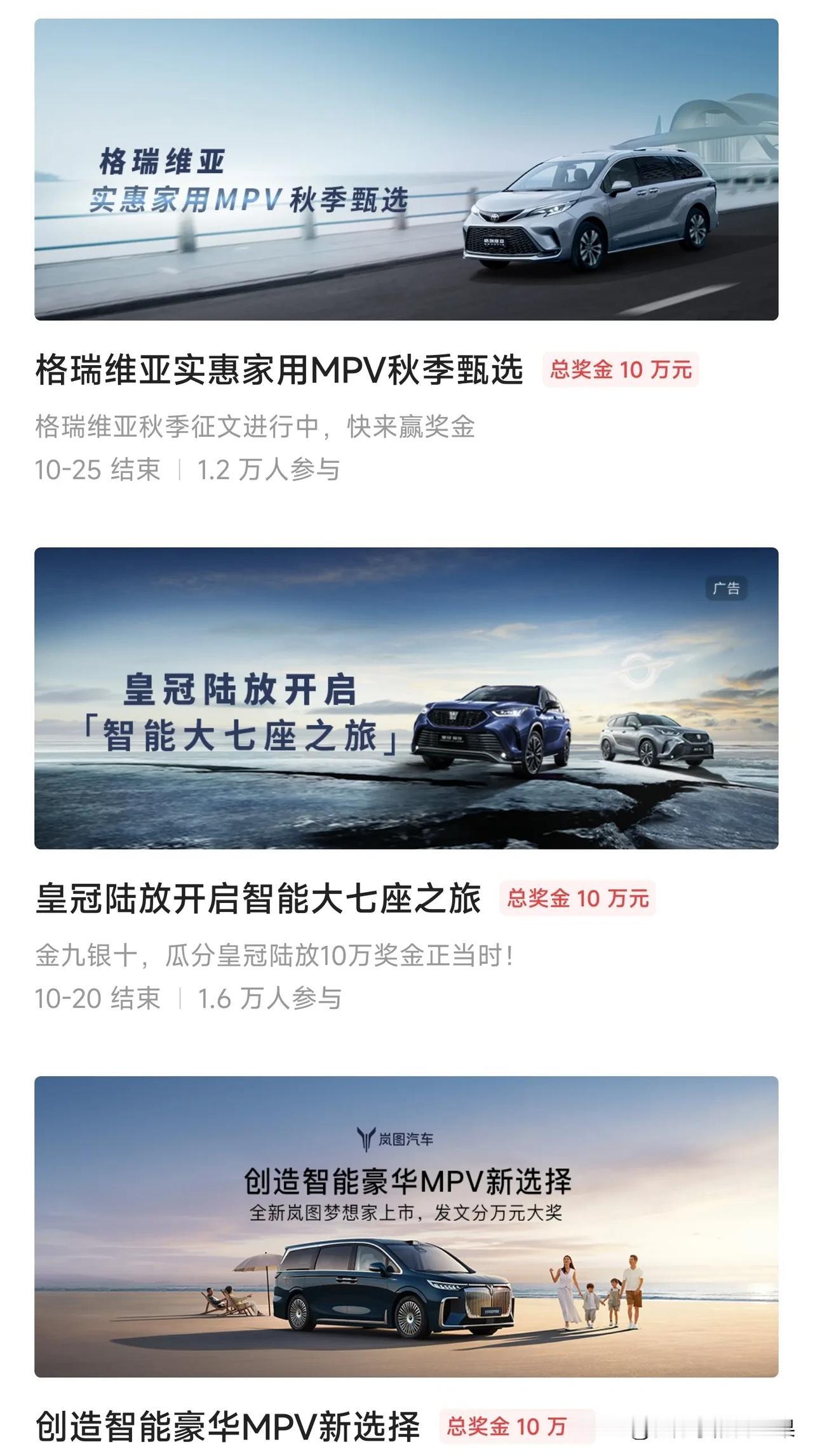 最近的活动有些夸张呀 怎么出了这么多 间接又说明了现在汽车市场的卷 大家上新都贼快,上新可不就得做营销嘛,总不能指望客户主动上门,当然要好好宣传,让市场知道自己的存在 再通过口碑效应,扩散到让更多人知道, 这样 ,后面真的需买车的时候 还有个心理印象风呢 就是太多,我水平有限,感觉跟不上了,要继续加油呀 #秋日生活打卡#
