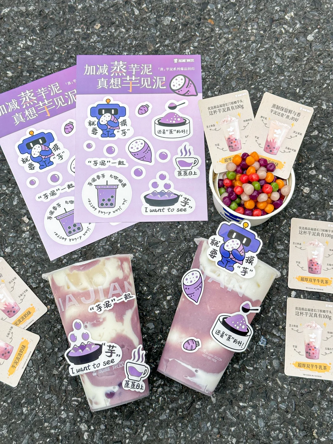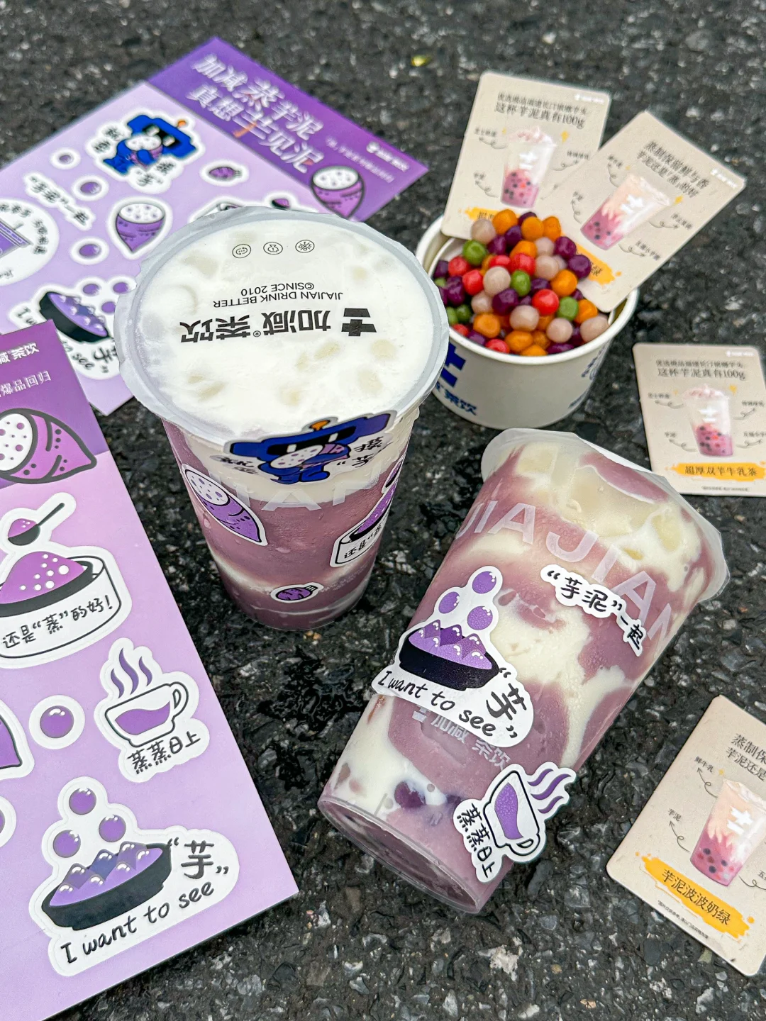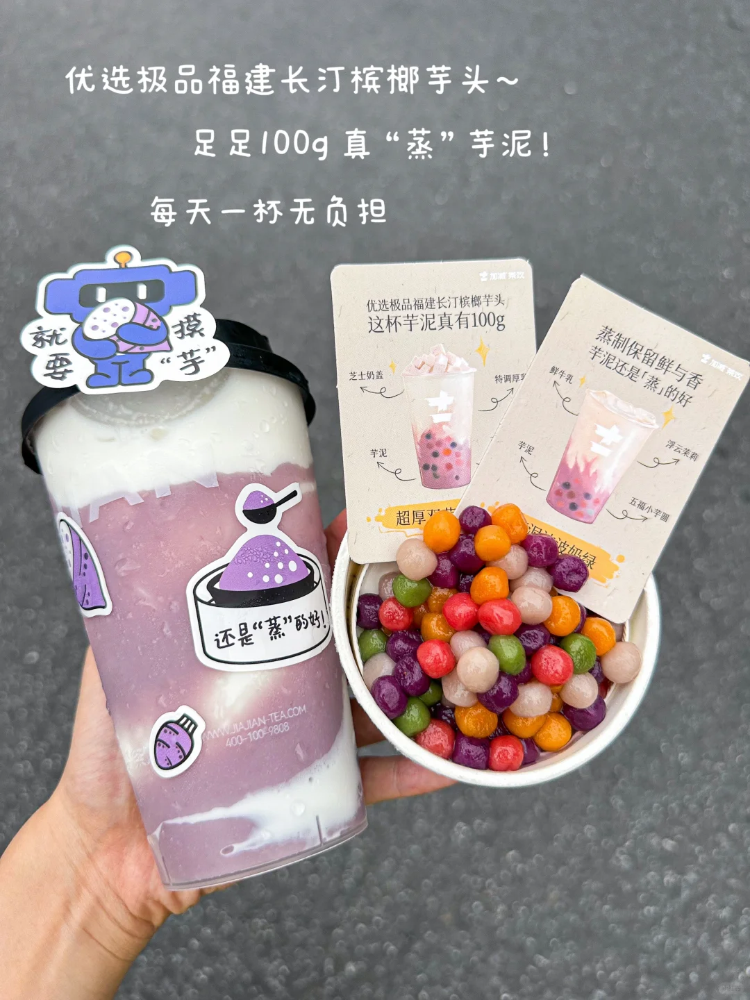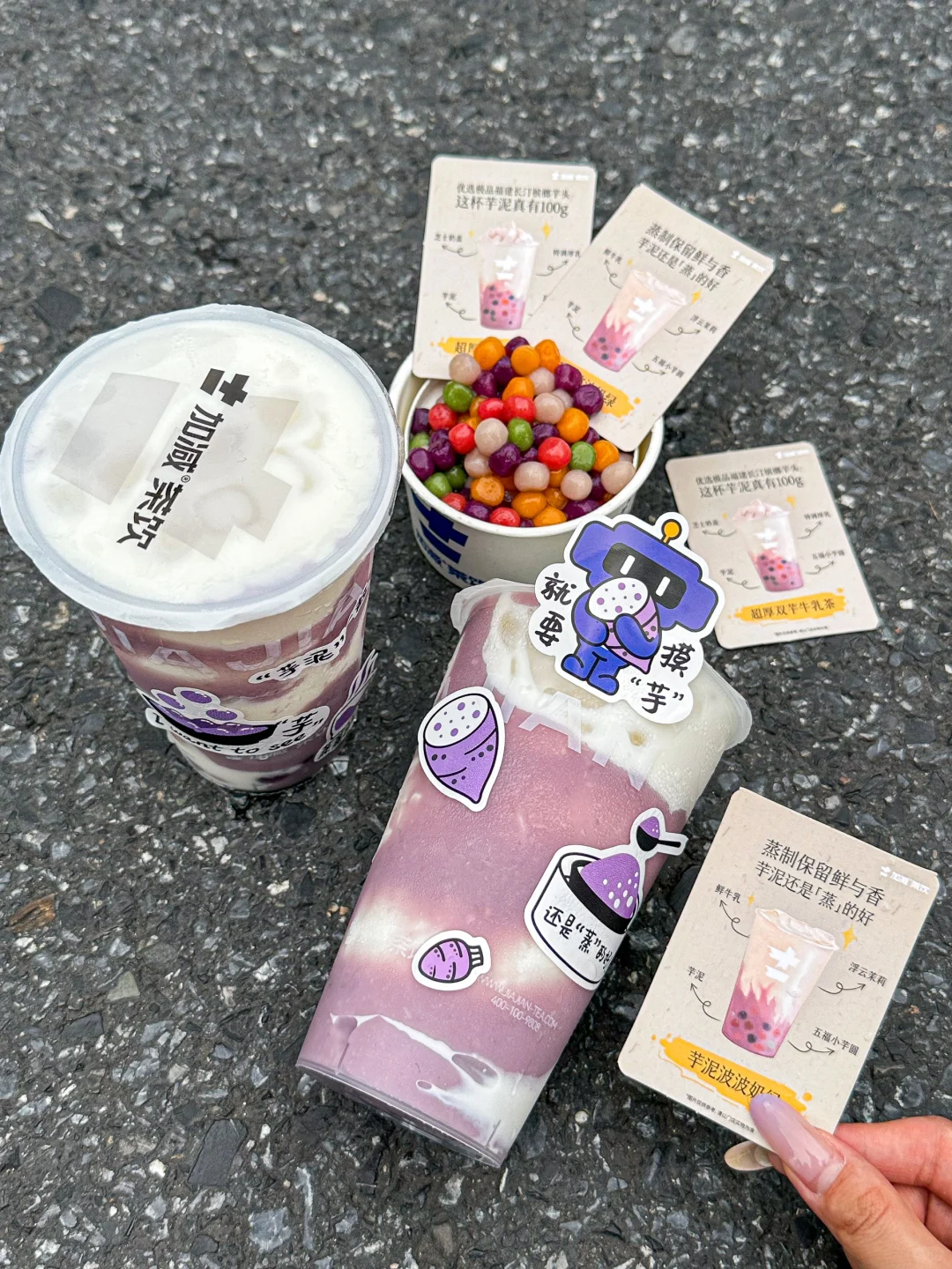 每到秋天就会开始期待这一杯芋泥牛乳茶! 真的芋泥脑袋人生奶茶!加上QQ糯糯的小丸子 ▪️超厚双芋牛乳茶 每杯都有足足100g!每一口都很满足 芋泥香甜细腻 推荐正常冰 三分甜🧊 特调厚乳奶味浓郁!加上芝士奶盖口感丰富 ▪️芋泥波波奶绿 茶香 奶香 芋泥香 这一杯回味超丰富 带着茶味喝着更轻盈 更香醇 奶茶小卡还挺可爱 贴纸一贴可爱加倍!