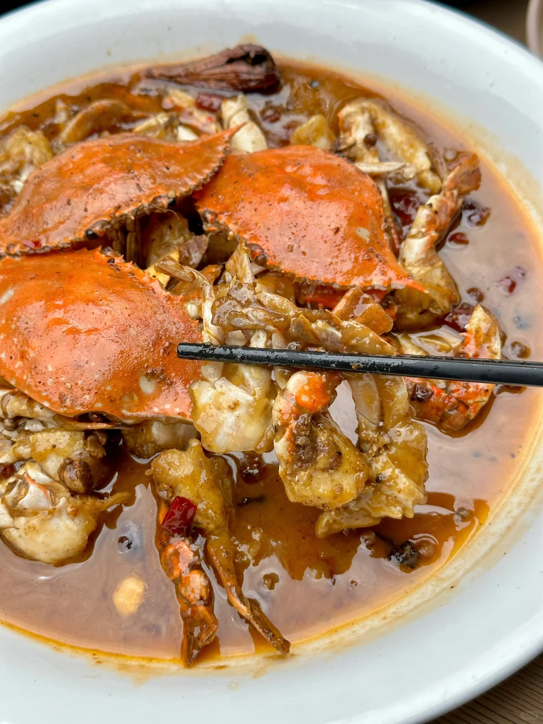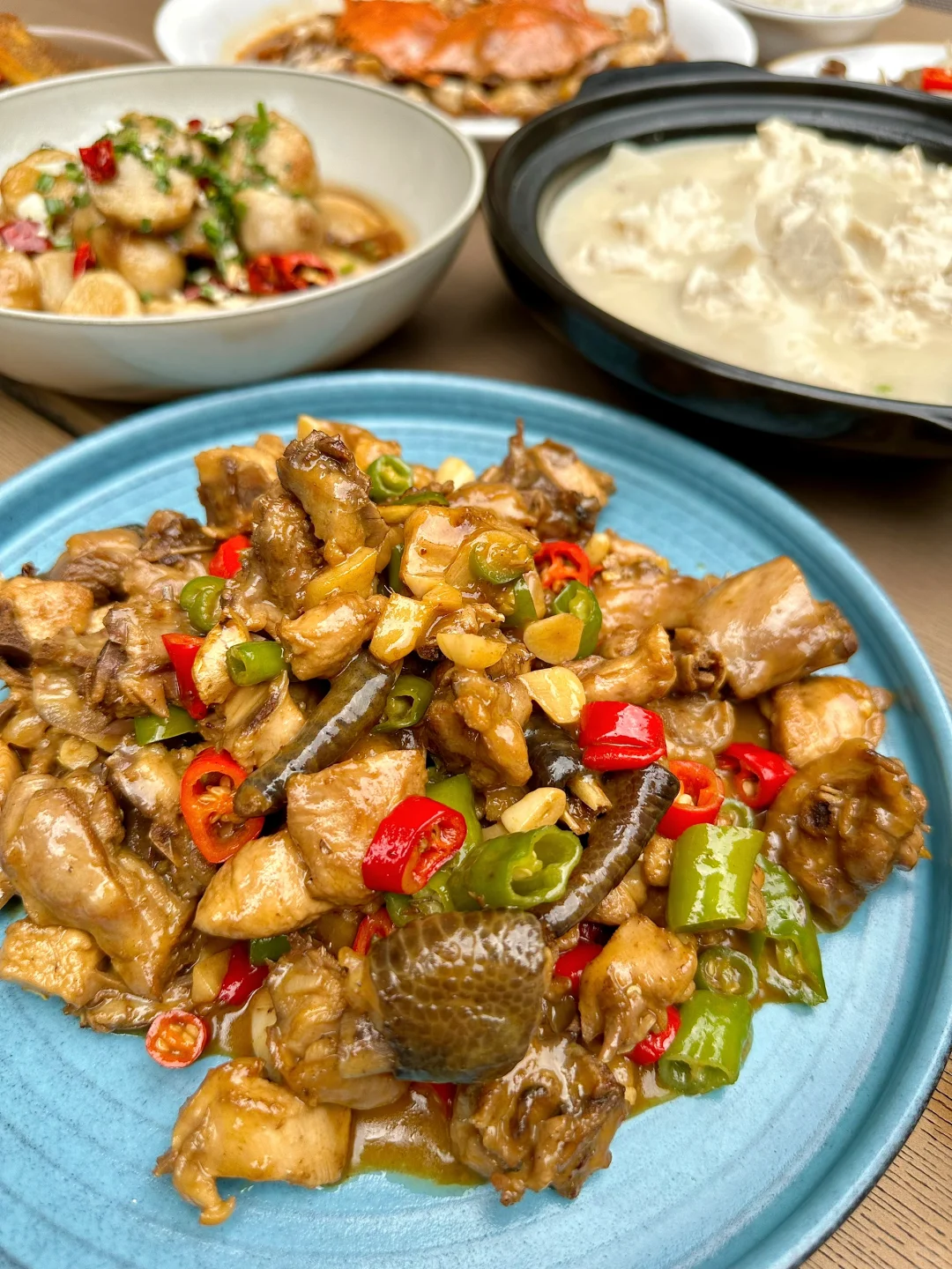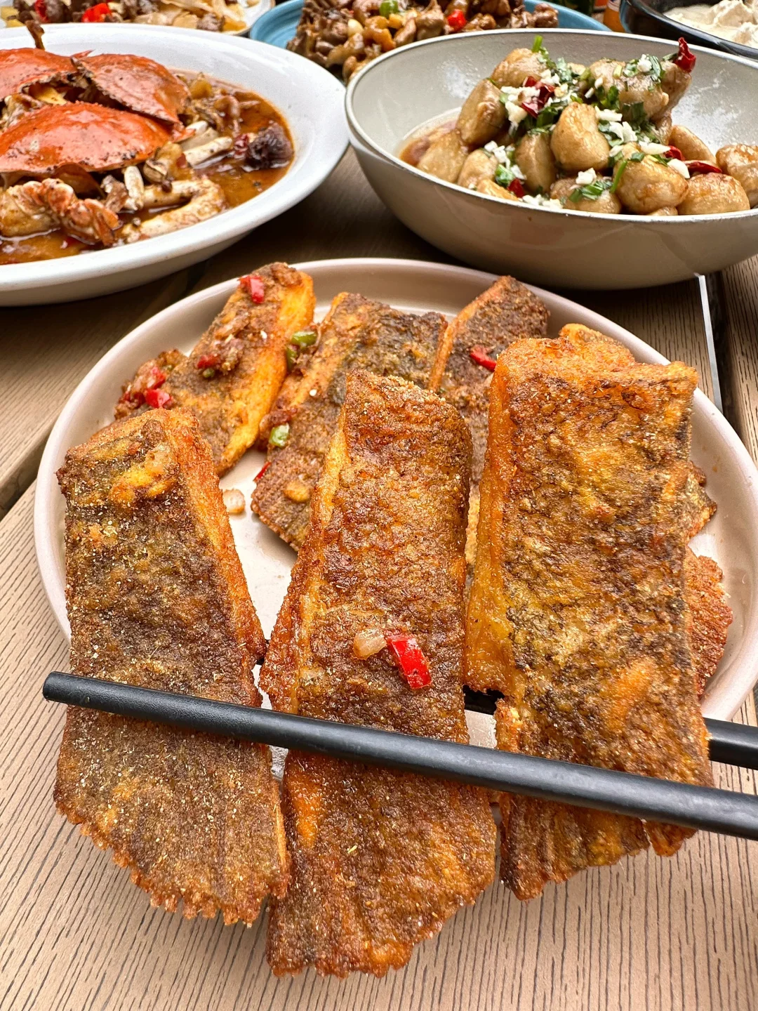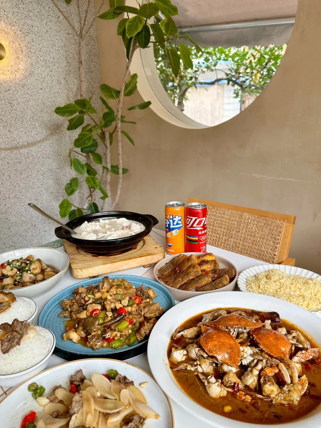 啊啊啊啊…吃完这一顿就开始期待梭子蟹的季节了 蟹很饱满 吃着又香又入味 还带着点甘甜很入味 醋鸡回回必点 油亮亮的太香了 酸溜溜的超下饭 酸萝卜炒牛肉下饭神器 两碗饭打底 椒盐鱼尾!鱼皮酥酥糯糯的趁热好吃!真推荐!