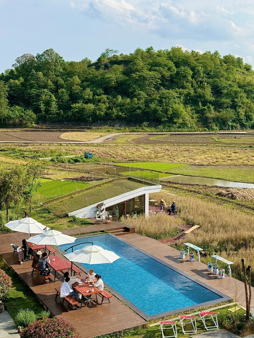 周末带着爸妈来走走 可以在这里喝着下午茶发呆一整天 坐在泳池边看着美景 真的是一件非常治愈的事情 有下午茶也有正餐 现在去的话风景会更美哦