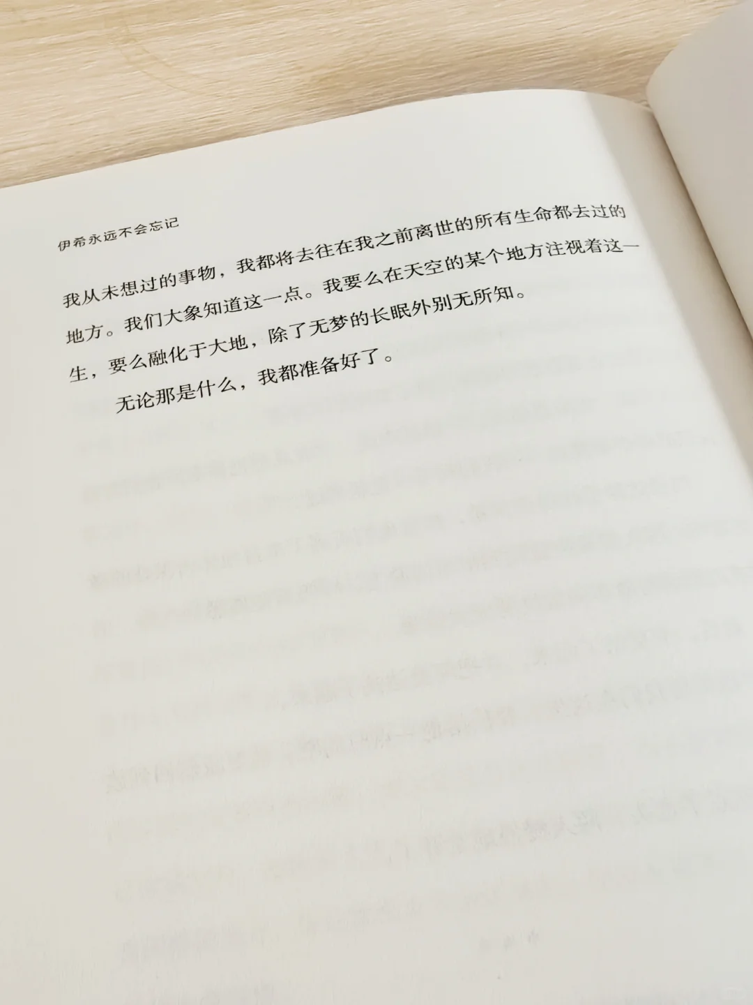 说起“大象永远不会忘记”,这个名句源于大象超强的记忆力!它们能记住复杂的社交关系、食物和水源的位置,甚至可以将重要的信息传承给后代。小说中,伊希虽然经历了痛苦,但依然记得对它生命有重要意义的人和地方。这让我想到了人与自然之间深厚的情感连接。