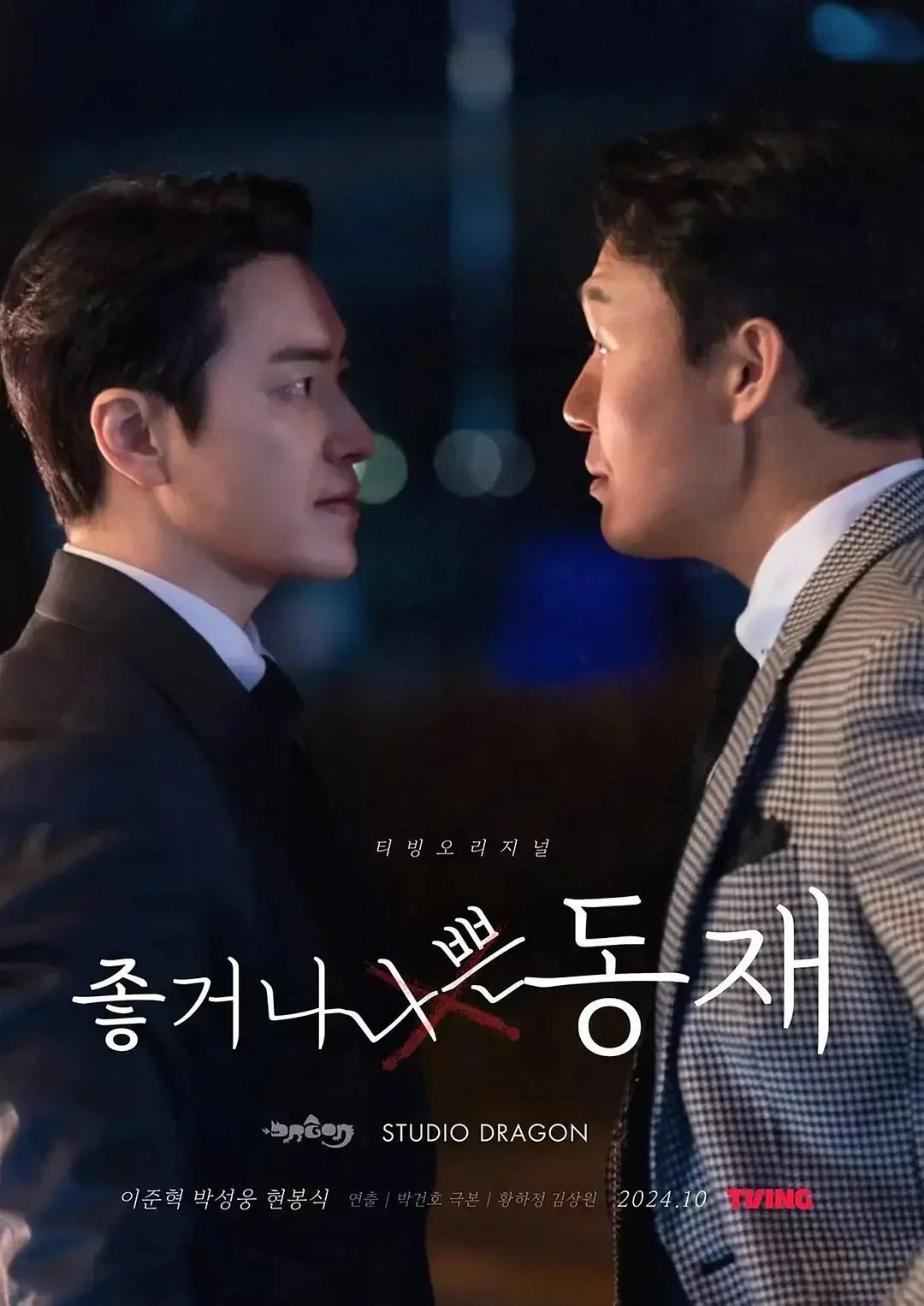 (좋거나 나쁜 동재 / Dongjae,The Good Or The Bastard)是TVING出品原创剧集,由Studio Dragon、ACE FACTORY、Higround制作,朴建浩执导、黄河正、金尚元编剧,李浚赫、朴成雄主演。2024年10月,该剧受邀参加第29届釜山国际电影节“On Screen”单元,并举行世界首映;10月10日,该剧在TVING上线播出。讲述摆脱赞助检察官的过去,想要得到认可的检察官“徐东载”和揭露他的过失的“南完成”展开泥潭之战的故事。