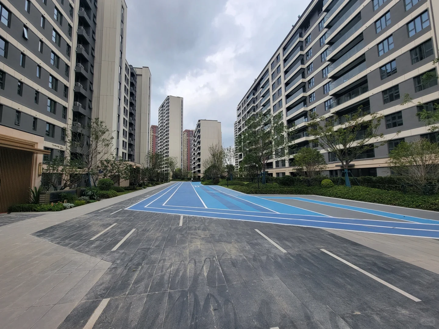 中奥二期也还没有完全交付,地面公区绿化比大华要好不少,石材路面,塑胶跑道也都如实交付。但因为大量毛坯洋房在装修阶段,路面石材碎裂,跑道塑胶破损随处可见,还是比较考验物业的。等一年后小区大部分自住客装修完成后,如果物业检修到位,那中奥的地面公区还是不错的。
