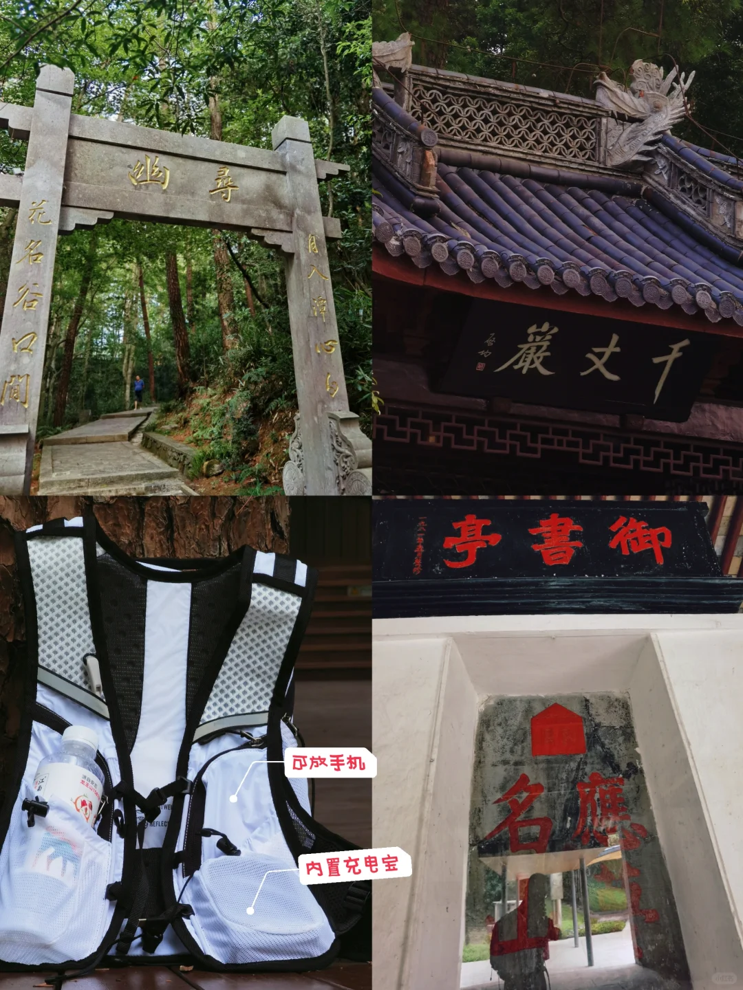 其中入山亭﹣御书亭段时民国时期修建,沿线有入山亭、隐秀亭、寒华亭、漱玉亭、御书亭等古迹分布,是一条最具人文历史底蕴的朝圣古道。御书亭嵌在丛林之中,内有宋碑刻“应梦名山”,是山的“文魂”,必须打卡。