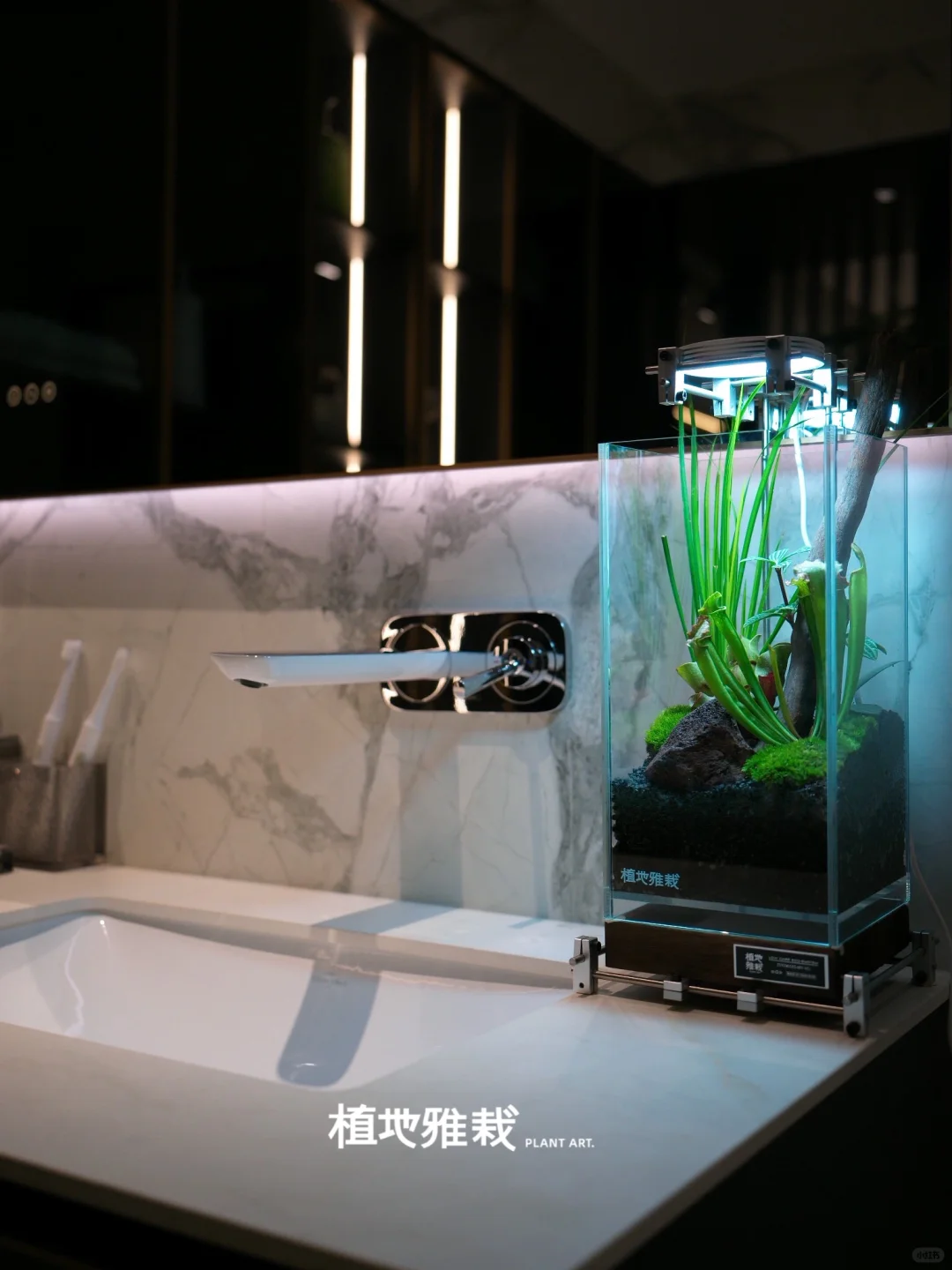 📍汉斯格雅红星美凯龙卡子门店 格雅展厅根据展厅内不同的场景搭配了不同的花艺和瓶器,烘托产品调性和空间氛围 同时给卫生间台面放置低养护生态缸,让本就高级的厨卫产品更添一抹生机 搭配补光灯,适合各种空间内的养殖和装饰。
