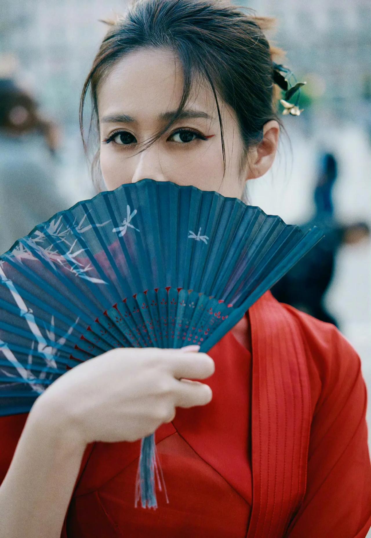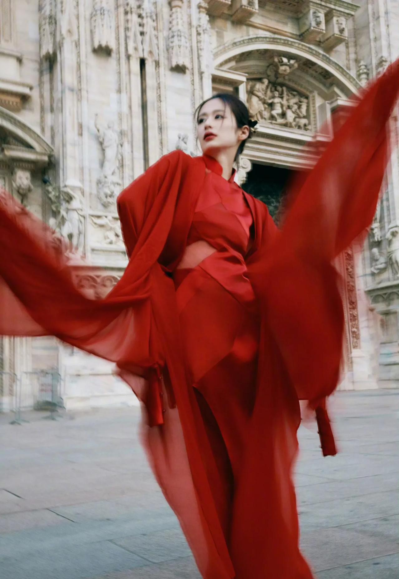 颖儿在米兰一身中国红,配文,人在米兰,心在江湖。好美丽。#颖儿##米兰#
