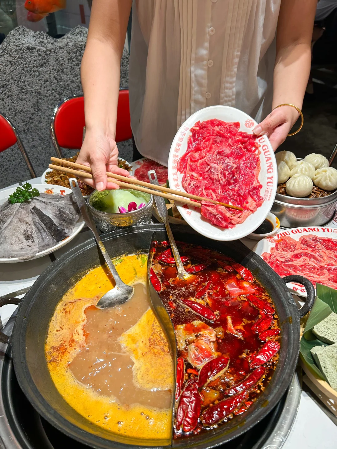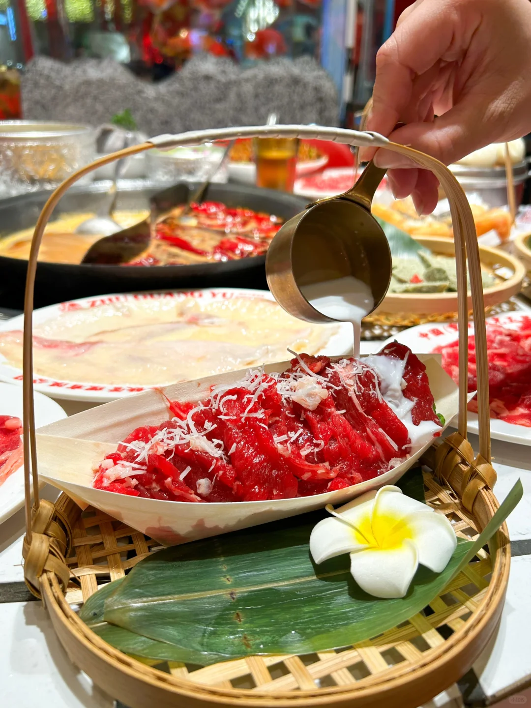 这家火锅店想吃好久了!🔥发现长沙竟然也有了,打卡一次就爱上了🥰霸王生椰牛肉、手切吊龙、手切雪花太好吃了!