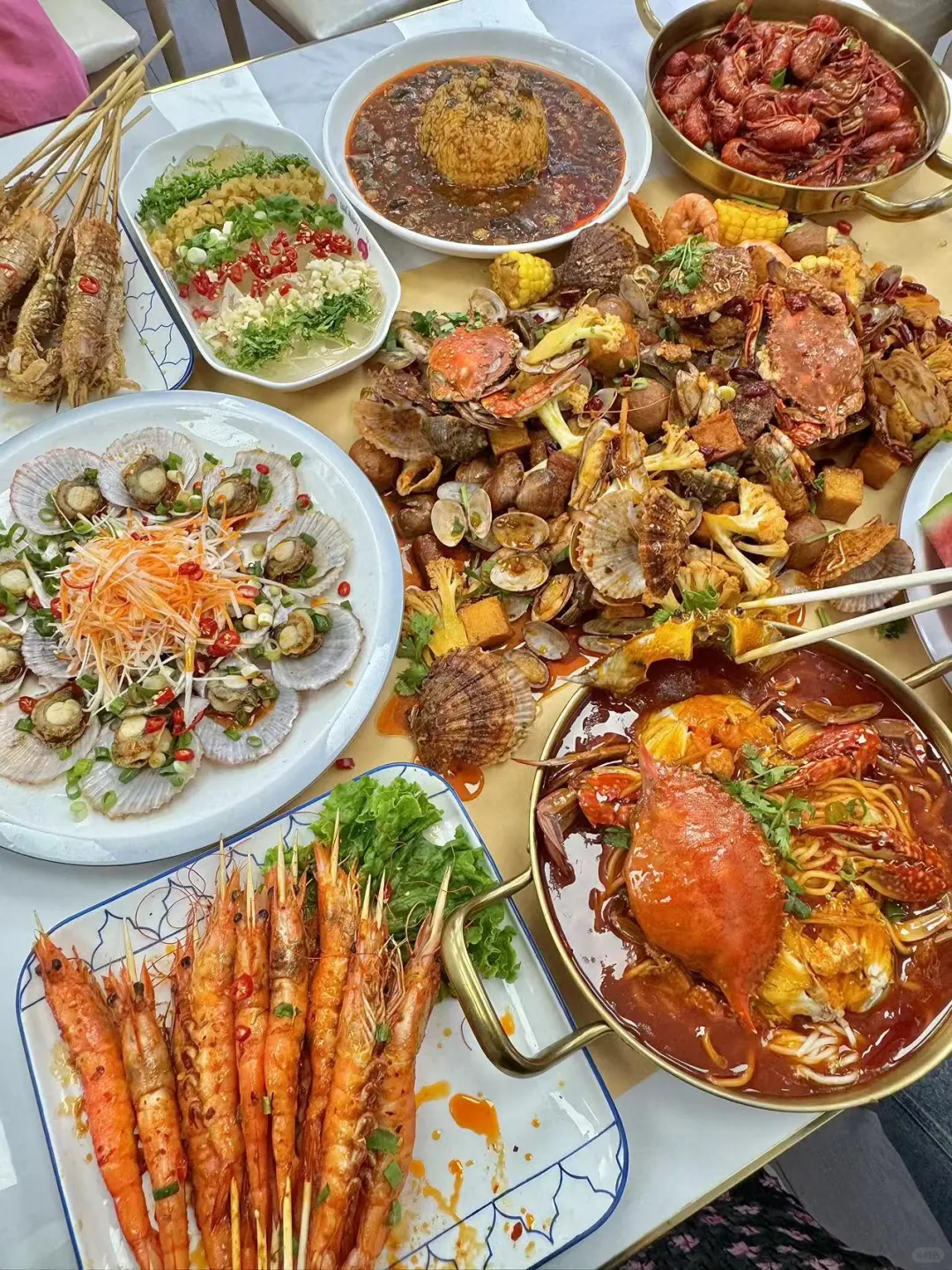 青岛的啤酒屋真的是太卷了… 73.9双人家常菜,152r买3斤多的手抓铁锹海鲜…这真的买不了吃亏买不了上当!! 怪不得店名就写了不踩雷! 我经常带朋友来这家,老板人可好了! 还送了我们现切的西瓜🍉!! 外地游客怕坑,可以提前买券 会挑海鲜的话也可以从市场买了现加工~ 青岛做法的话就清蒸! 要是吃不惯觉得没滋味,可以点螃蟹拌面🍜 他家这个螃蟹开盖满满的黄!!厚吨吨的!! 贼过瘾!!嘎嘎香 2个人以上,3斤的手抓铁锹海鲜必须点!一次吃好几种海鲜~ 还有烤大虾凉粉什么的都好吃!!