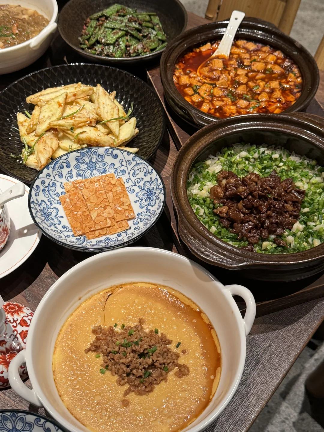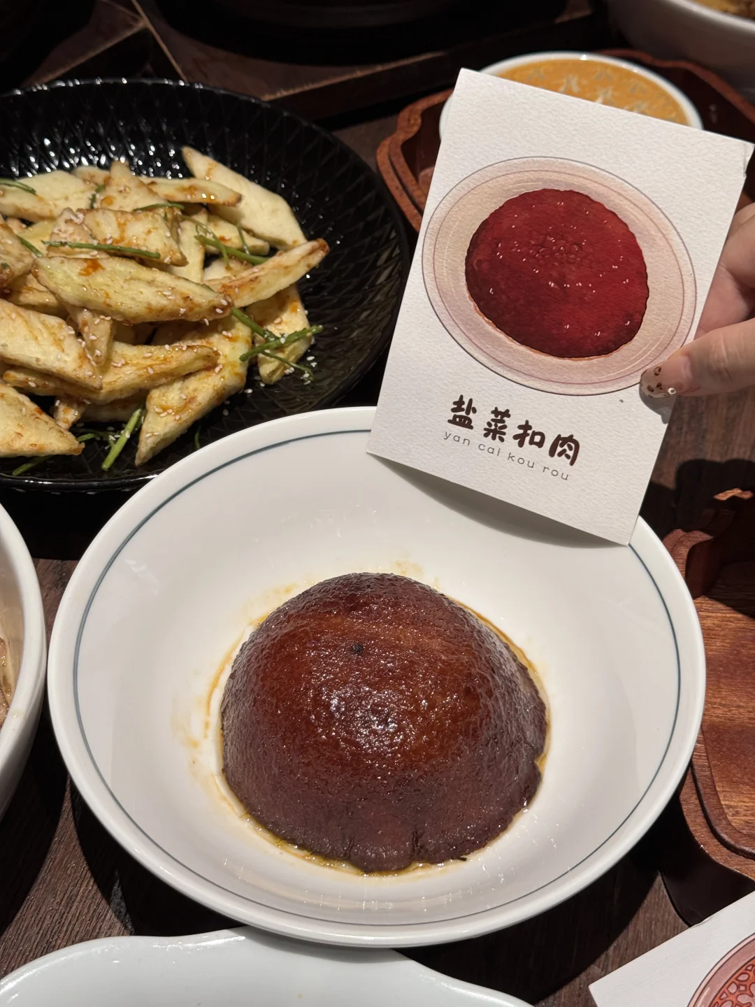 - 卧卧卧!!南京很火的马鸿兴中午来合肥啦,10刷的店铺,付点单攻略。 - ✔️新荣记同款“燕窝汤圆”,糯糯的很适合女生;“镂空窗花手作老酸奶”、进店就送的“杏仁酥”宫廷甜品真的超精致!! ✔️盐菜扣肉一整块五花肉肥而不腻,搭配梅干菜,真的超级香。 ✔️牛肉萃饭,牛肉饭趁热拌均,激发出韭菜的香气,大颗牛肉粒特别嫩,酱汁很鲜美。 ✔️冰川茄子,一口惊艳的菜,茄子入口脆脆的,里面糯糯的,甜味恰到好处。 - 还有宫爆虾球、和牛麻婆豆腐、海味烧家乡薯粉…都是常点的菜,百吃不腻!!! -
